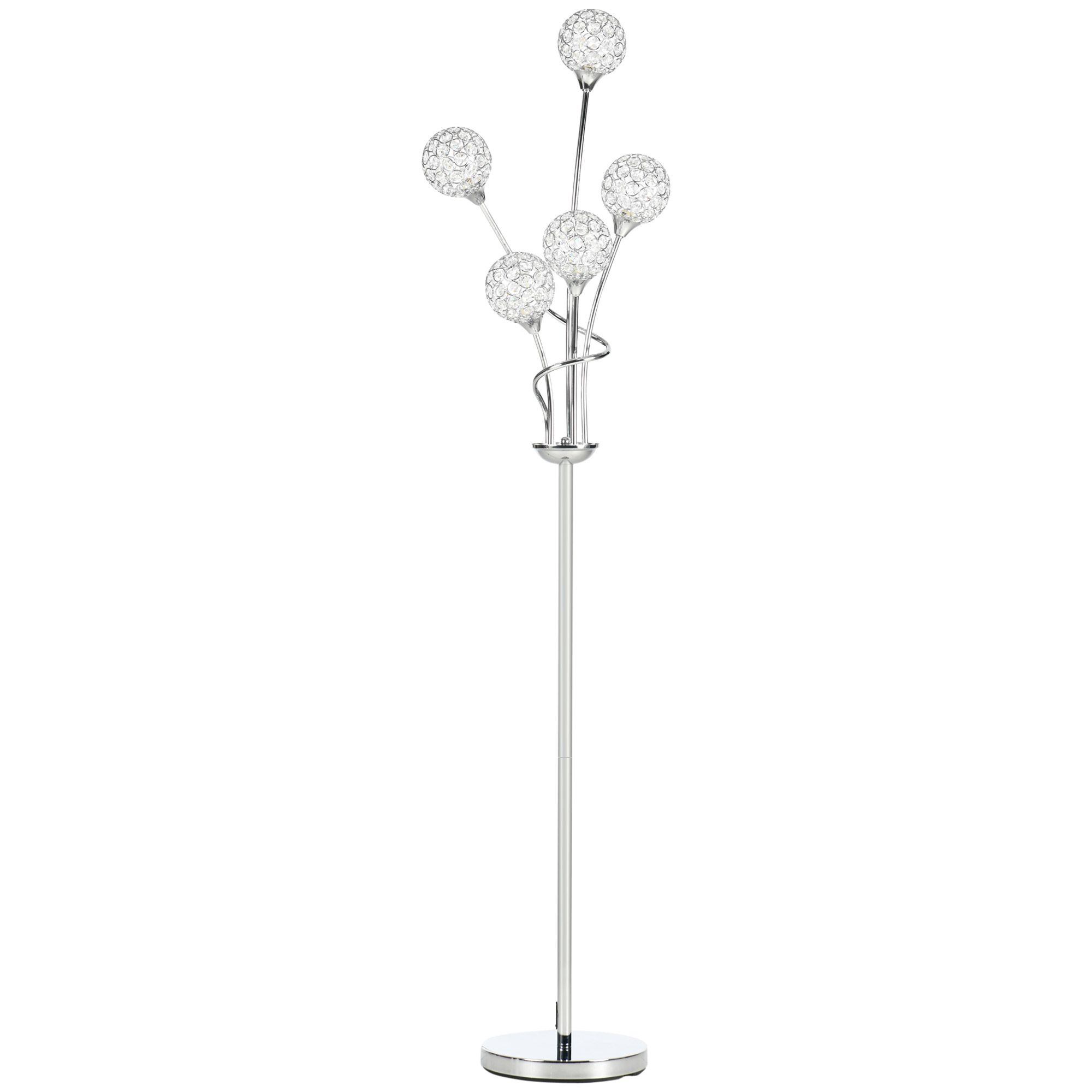 Crystal Floor Lamps for Living Room Bedroom with 5 Light, Modern Upright Standing Lamp, 34x25x156cm, Silver