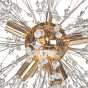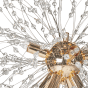 This pendant lamp is a breathtaking fusion of elegance and modernity. Adorned with sparkling crystal glass beads, this captivating fixture evokes the beauty of a blossoming flower or glistening snowflake. Golden fittings allow for mounting up to 8 bulbs, thanks to which the lamp will be perfect for a living room, where it can beautifully illuminate the space. Details: Color: Gold, Transparent. Main material: Iron. Additional material: Glass. Weight: 1 Assembly: To be Fitted by Qualified Electrician