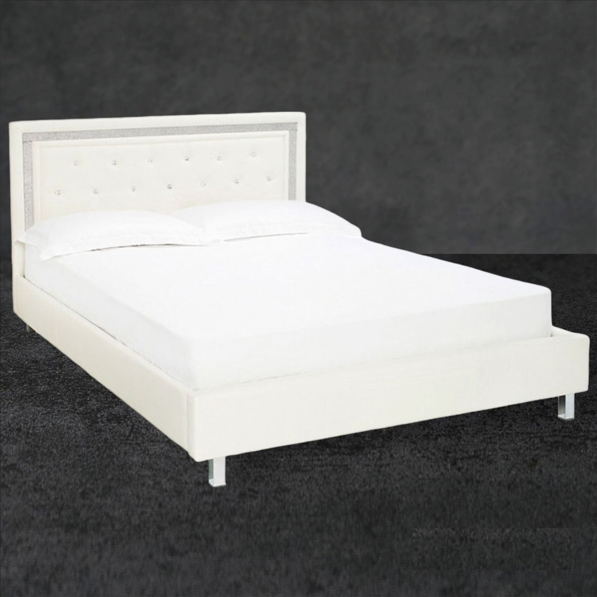 The Crystalle King Size Bed certainly brings a touch of opulence to the bedroom. The stylish white faux leather bed frame and clean, simple lines are modern style staples. Bringing the extra bling and ensuring the wow factor, the headboard of the Crystalle is finished with pin-tuck detail, diamante crystals and a delicate diamante trimmed edge that creates a striking framed effect. This bed will not go unnoticed, for all the right reasons