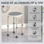 Made for assistance in the shower or bath, this bath stool from HOMCOM is suitable for the elderly or those who need extra help daily. Made from aluminium, the four legs are resilient to water damage, keeping the chair stable, balanced and able to withstand up to 135kg in weight. Adjustable to six different levels so you can set it at the most comfortable level for you, it is fitted with a full rotating seat so you can move from side-to-side easily. It's finished with non-slip feet for safety. 360° swivel seat: Large, round and backless for freedom when seated, the bath chair allows you to move from side-to-side easily. Adjustable height: This shower seat can be set to six different levels, allowing you to set it to a level most comfortable and convenient for you. Aluminium frame: Solid construction which is naturally lightweight, strong and resistant to water damage. Non-slip feet: Ensure safety when in use. Dimensions: Dia. 33 x 35.5-48.5 cm.