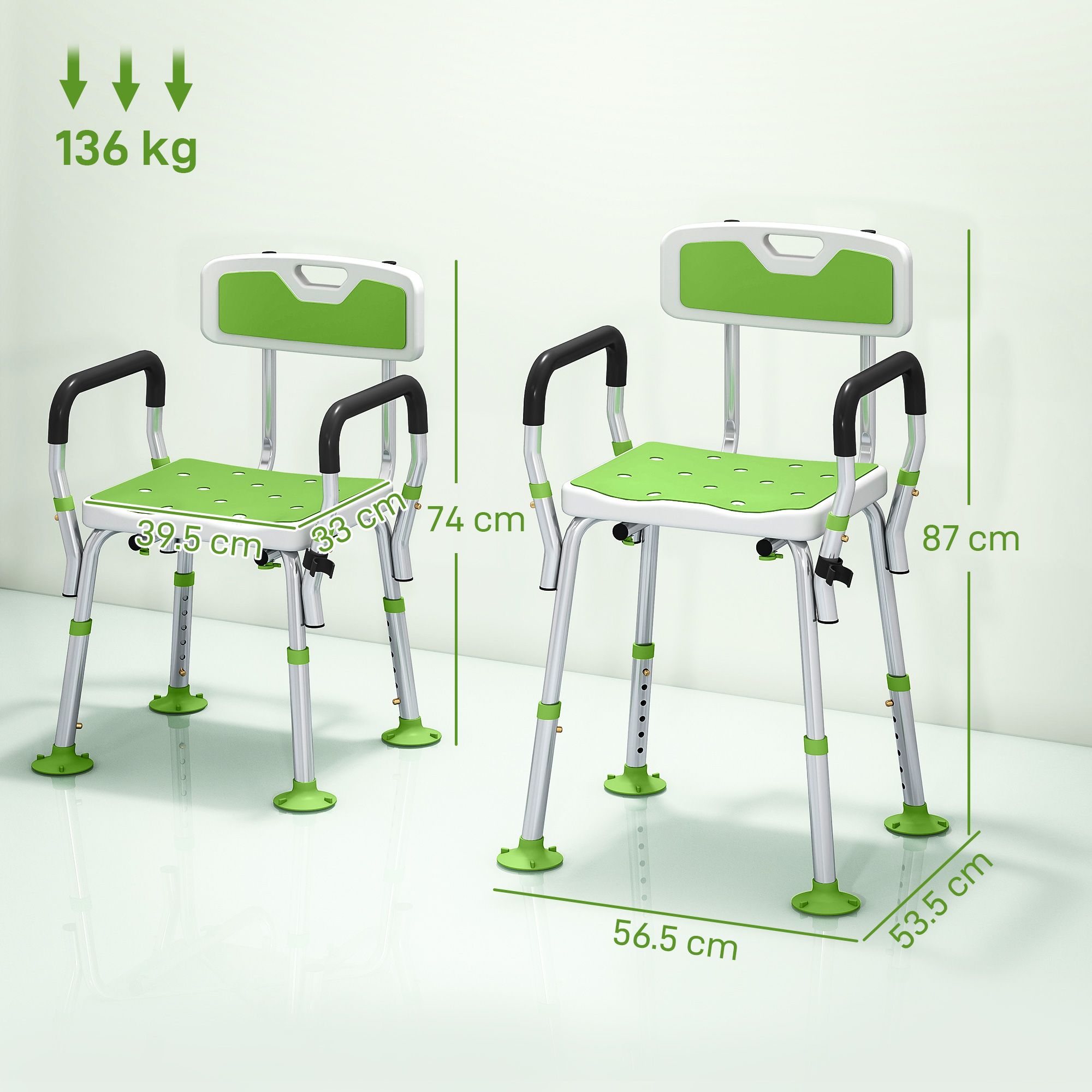 DALRIC Shower Chair Aluminium Padded Adjustable with Backrest - Green