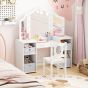 DALWICKE Kids Vanity Desk and Chair 2 in 1 Toddler Makeup Pretend Play Table-Gray & White