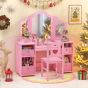 DALWICKE Kids Vanity Desk and Chair 2 in 1 Toddler Makeup Pretend Play Table-Pink