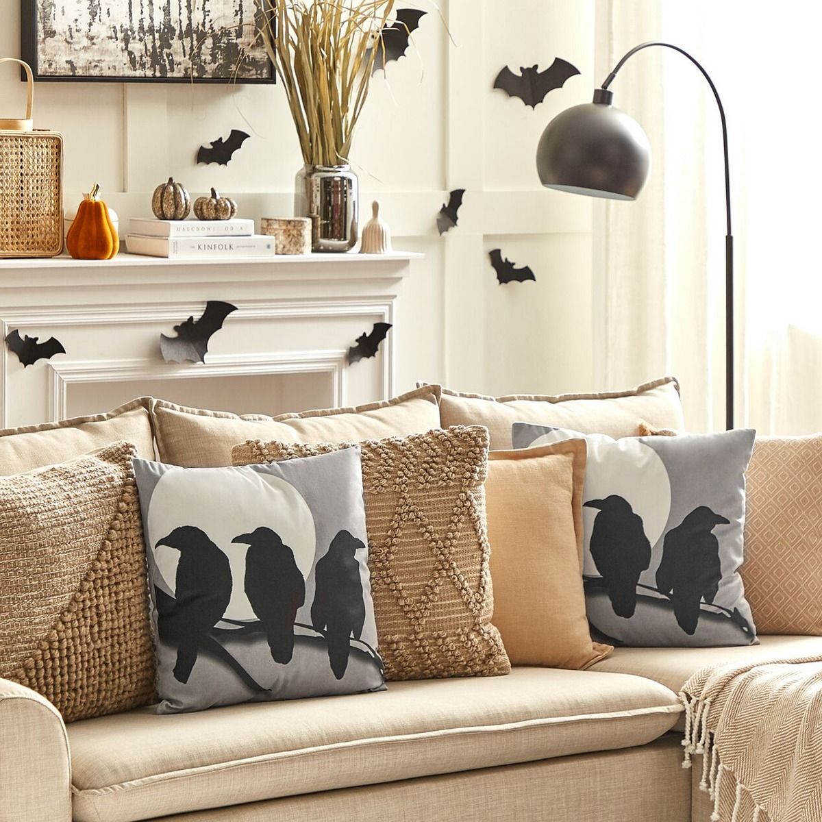 Prepare your home for a Halloween party and set the mood with these scatter pillows. Their covers feature birds resting on a branch during a full moon - this pattern is surely going to spook your guests. The cushions are made out of velvet, so besides being scary, they're also durable and pleasant to touch. The covers also features a zip, so you can remove them and clean whenever you want.