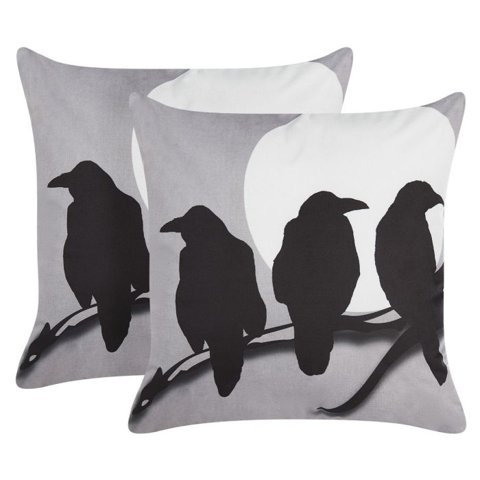 Dark Crows Velvet Cushion Set 45x45cm - Grey