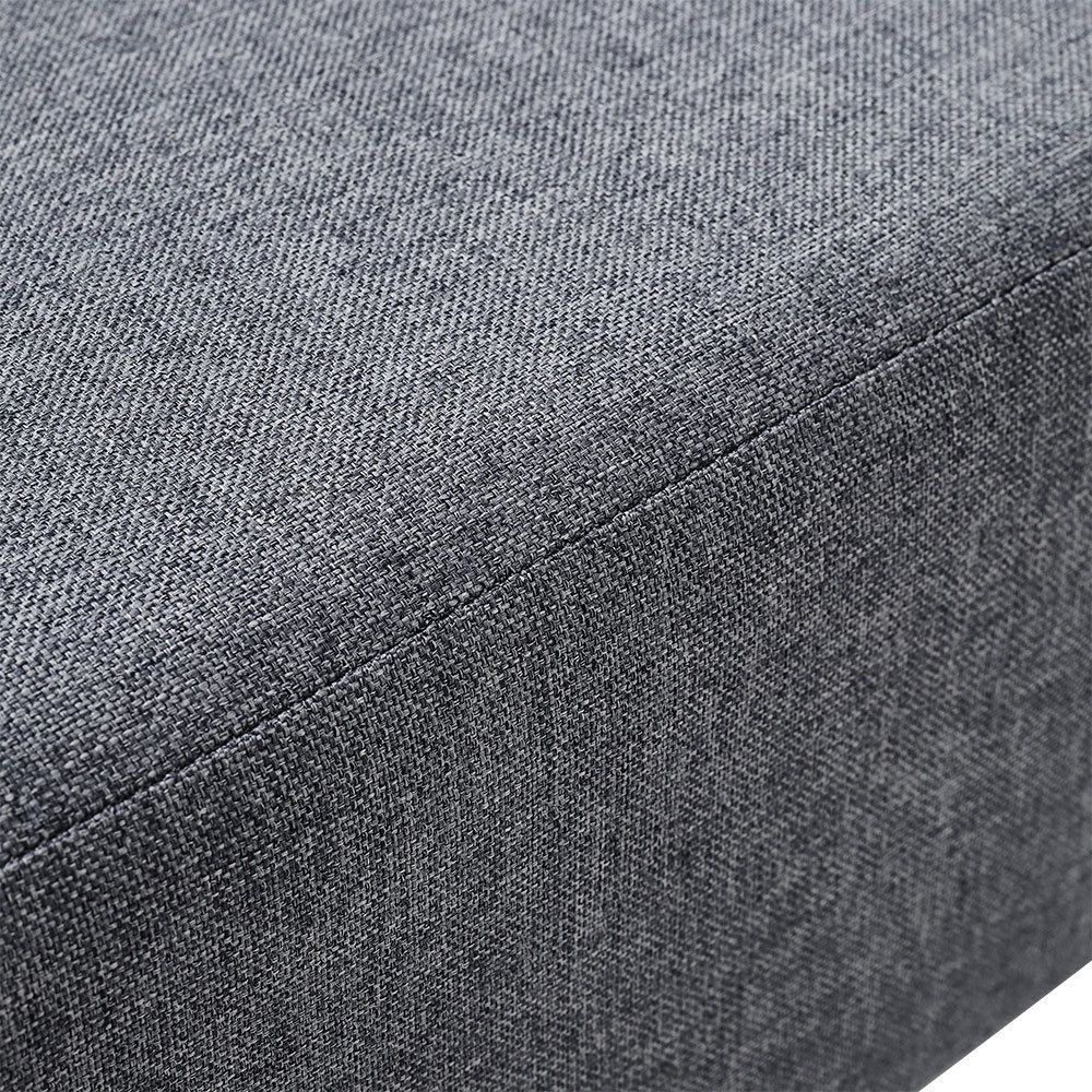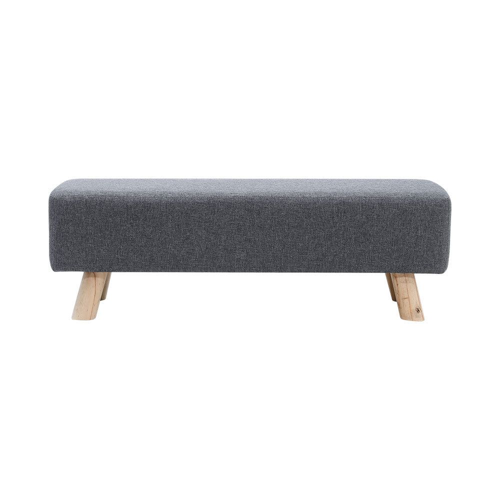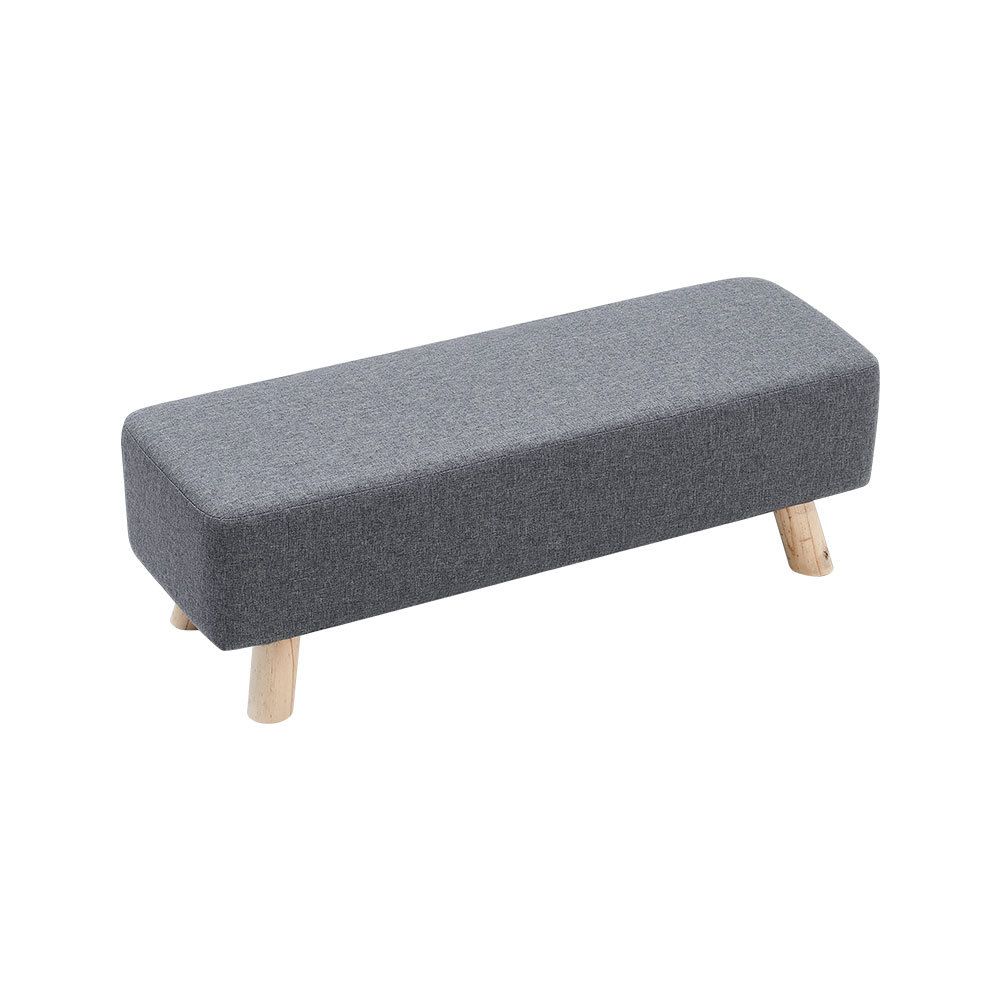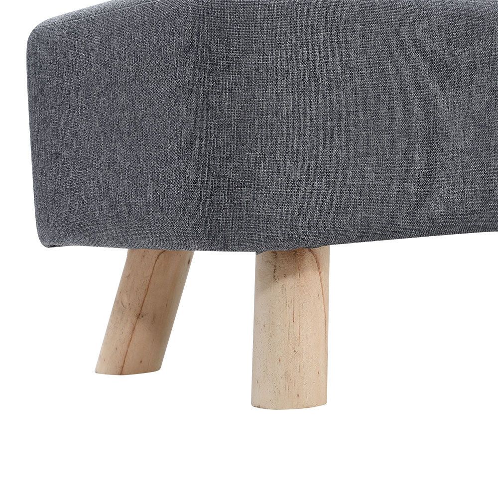 Dark Grey 81cm Wide Rectangular Linen Ottoman Footstool Wooden Legs