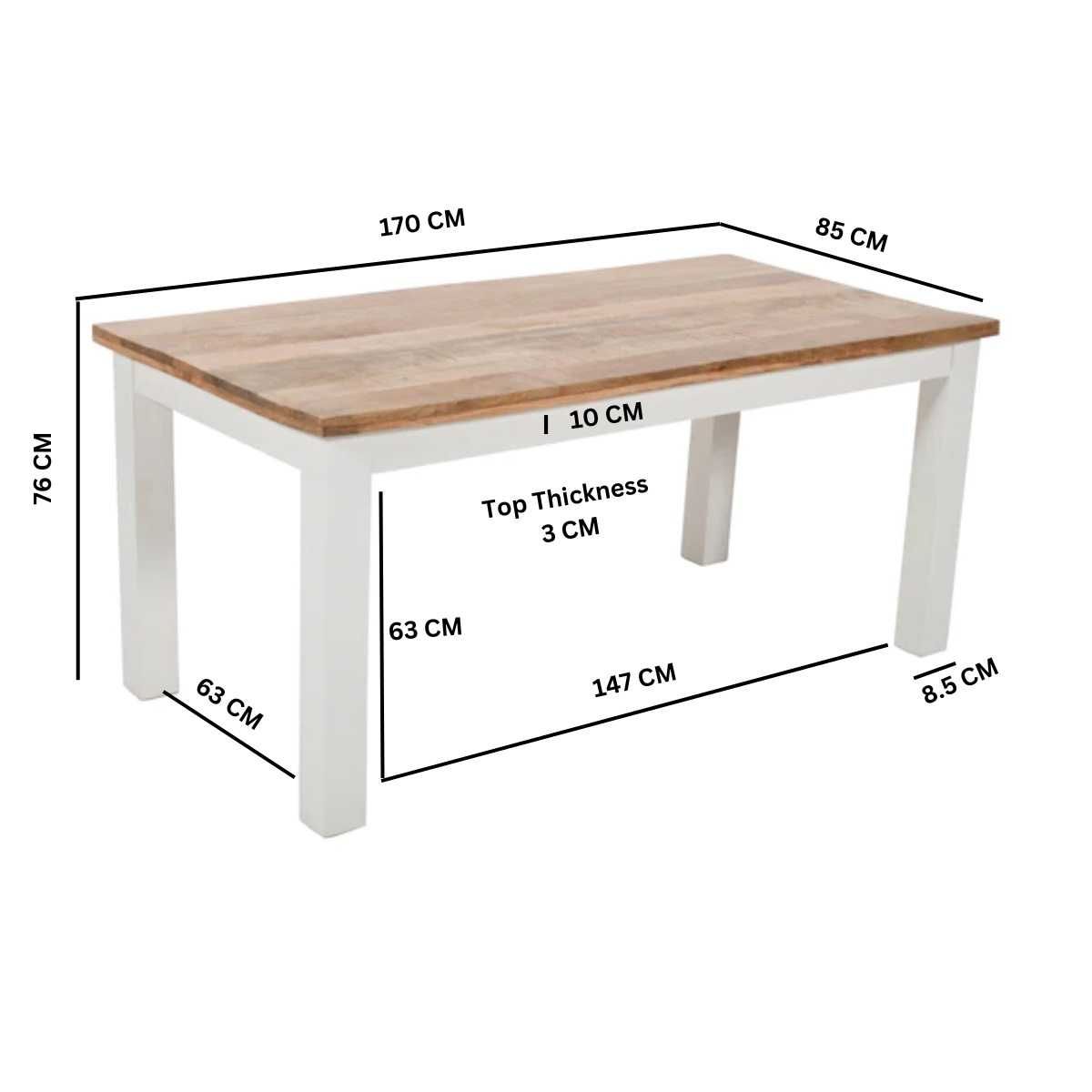 Deacon Solid Mango Wood Dining Table 170cm - White and Natural Finish