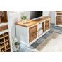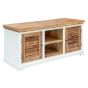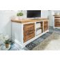 Deacon Solid Mango Wood Tv Cabinet Upto 57" with Door and Shelves - White and Natural Finish