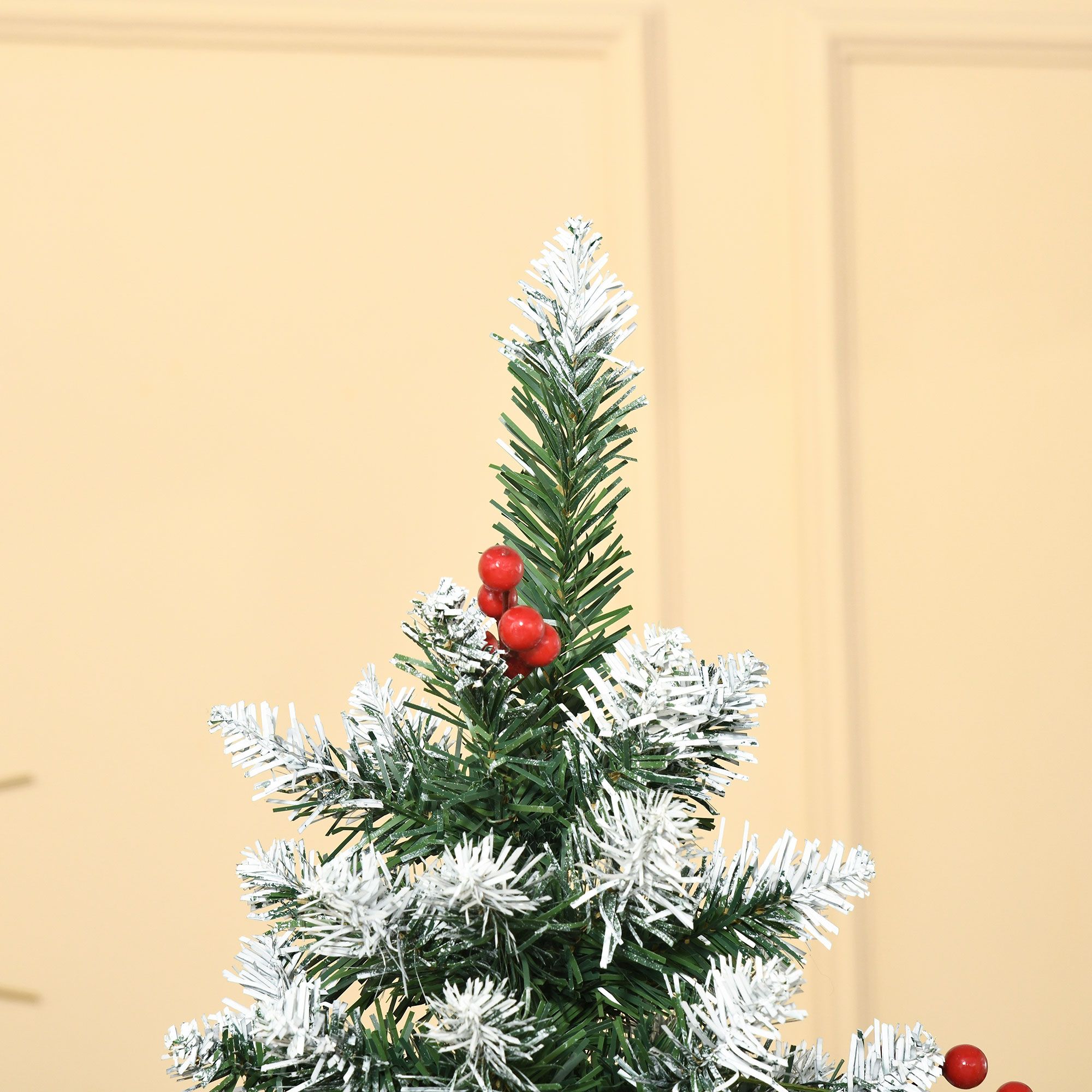 Debbie 6FT Prelit Christmas Tree Xmas Pencil Tree with Red Berries and Pinecones with Foldable Feet - Green