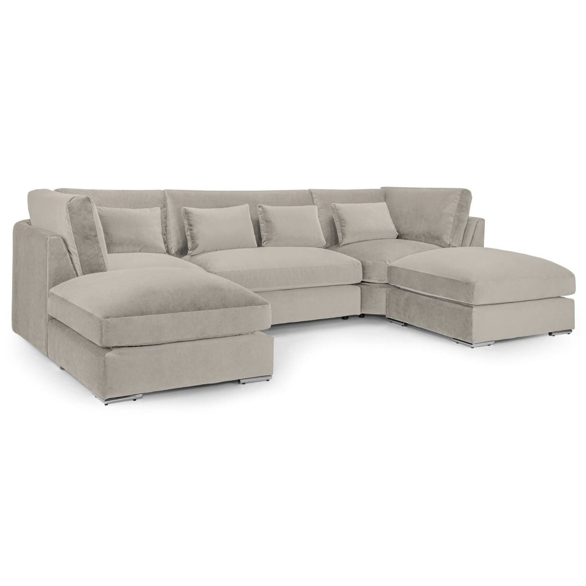 Deborah Beige Plush Velvet U Shape Large Corner Sofa