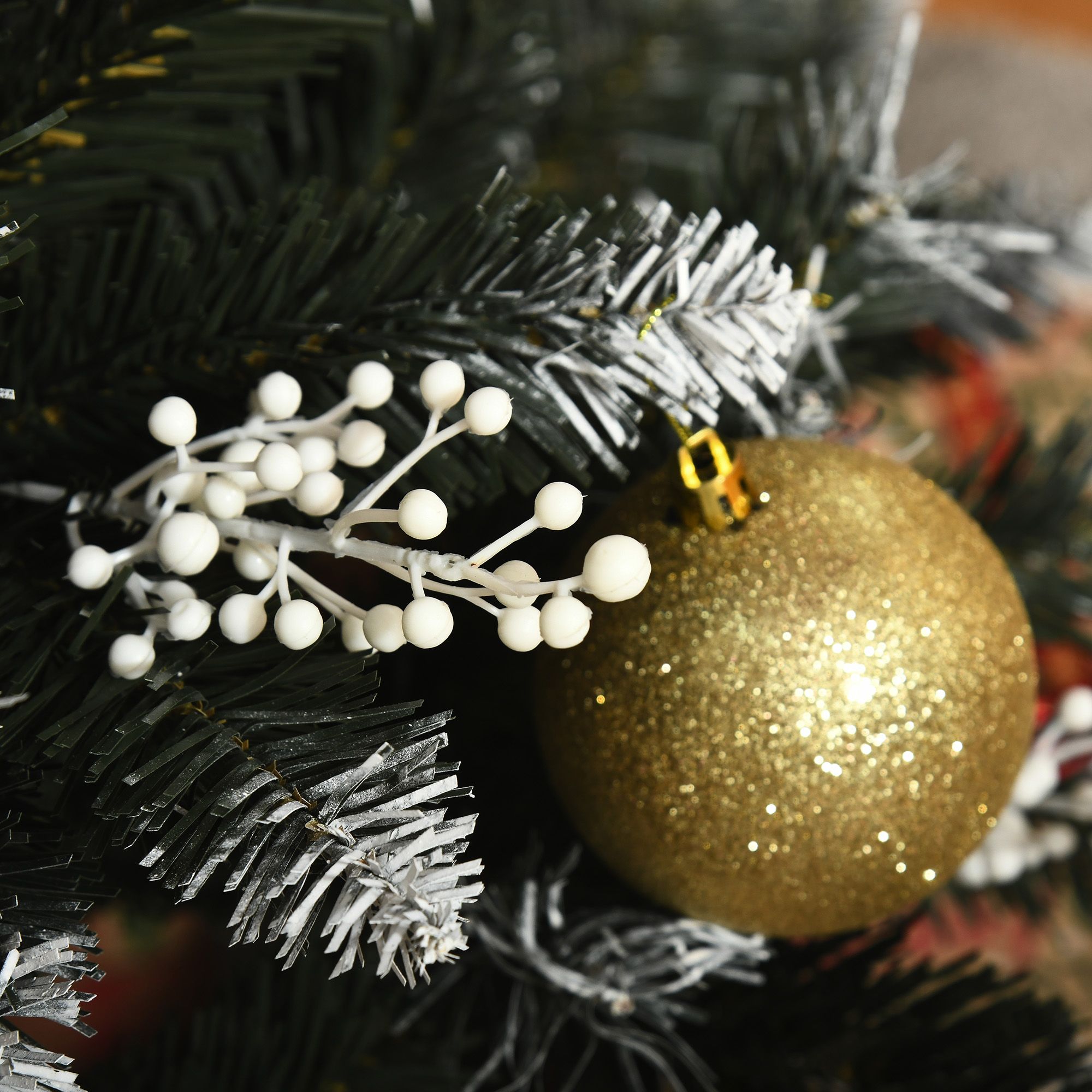 Debbie 5FT Artificial Snow Dipped Christmas Tree Xmas Pencil Tree Holiday Home Decoration with Foldable Feet White Berries Dark Green
