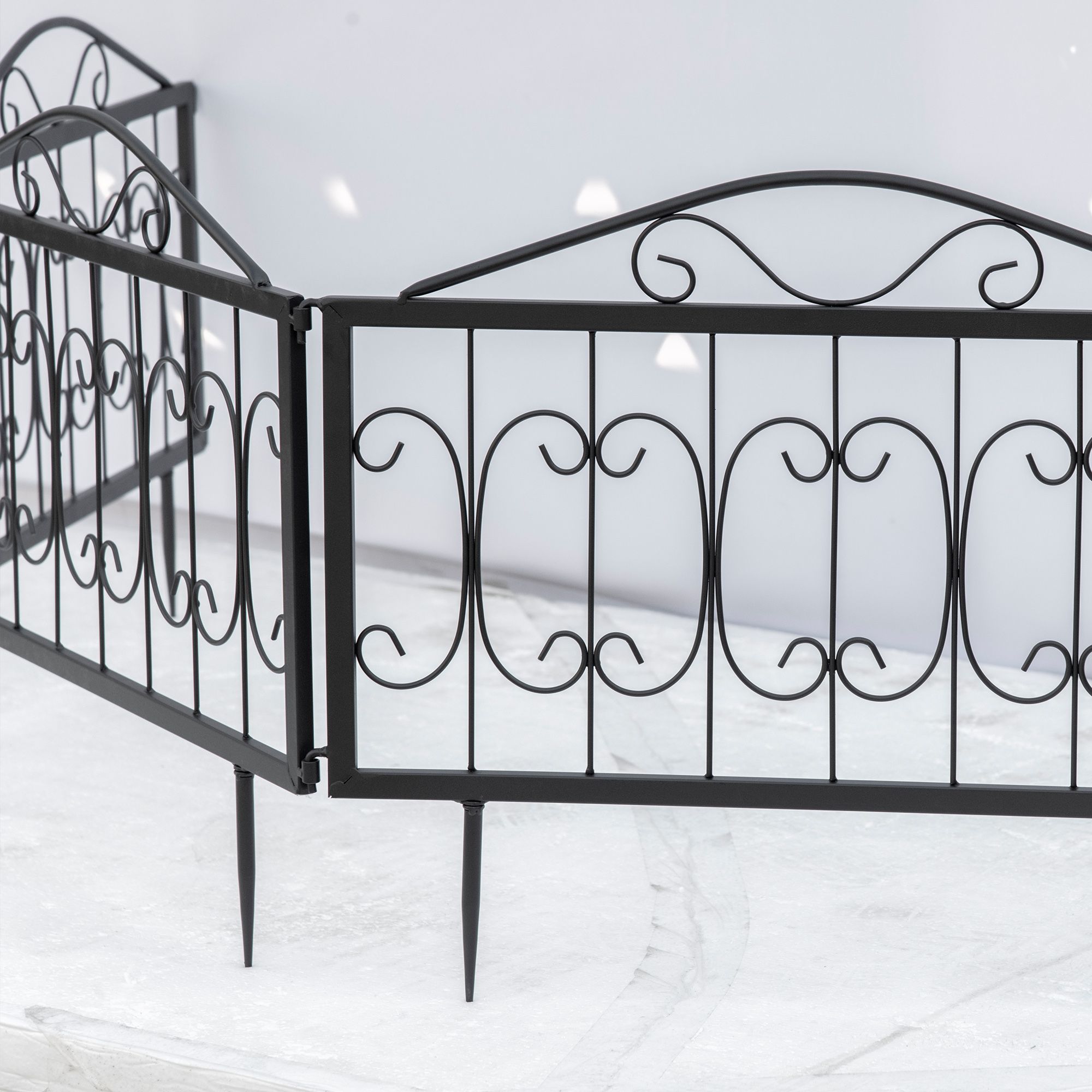 Decorative Garden Fencing, 4PCs Outdoor Picket Fence Panels, Rustproof Metal Wire Landscape Flower Bed Border Edging Animal Barrier, Black