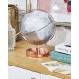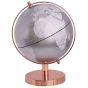 A globe on the stand is an accent piece that adds a unique character to any living room or home library. Its silver colour, rose gold stand and modern style fits perfectly within different styled interiors. The sphere looks great placed on a desk or a bookshelf and makes a great gift for a traveller. Details: Color: Rose Gold, Silver. Main material: Synthetic Material. Additional material: Metal. Weight: 1 Assembly: Does Not Require Assembly