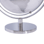 A globe on the stand is an accent piece that adds a unique character to any living room or home library. Its silver colour and modern style fit perfectly within different styled interiors. The sphere looks great placed on a desk or a bookshelf and makes a great gift for a traveller. Details: Color: Silver, White. Main material: Synthetic Material. Additional material: Steel. Weight: 1 Assembly: Does Not Require Assembly