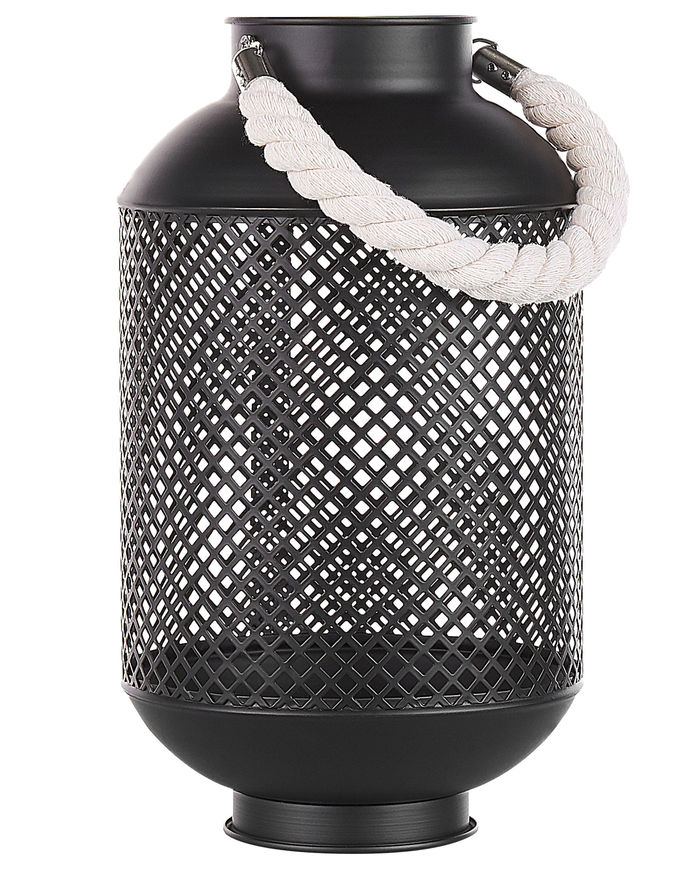 A beautiful, openwork metal lantern, inspired by Moroccan design. Featuring a delicate, filigree pattern that helps create soft, ambient light, this would be great to pair with a candle or fairy lights. It can be placed as a standing decoration piece, or an eye-catching, hanging accent. Details: Color: Black. Main material: Metal. Weight: 1 Assembly: Does Not Require Assembly