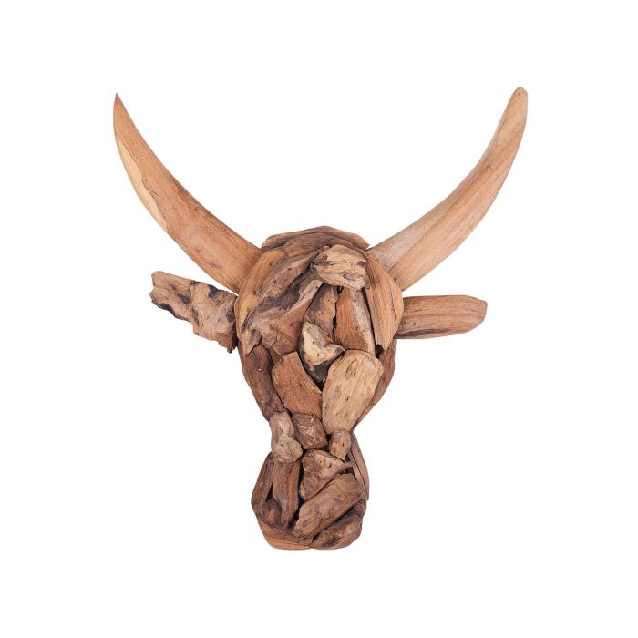 Bring a South-western vibe to your living room, home office or bedroom with this unique wall decor. Crafted from irregular pieces of durable teak wood, it resembles a bulls' skull with horns. With its natural look, this wall décor fits into boho or rustic-inspired interiors and looks perfect set with other wooden pieces. Details: Color: Light Wood. Main material: Teak Wood. Weight: 1 Assembly: Does Not Require Assembly Wood type: Tectona grandis Wood Origin: Indonesia