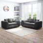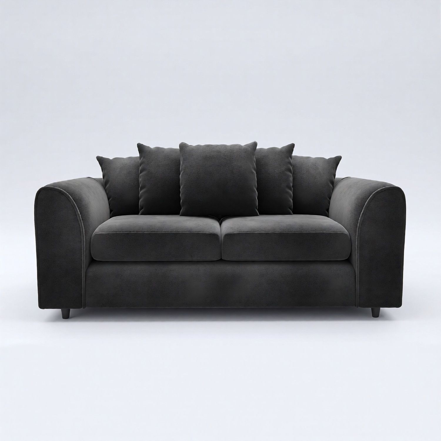 DELANO Plush Velvet 3 and 2 Seater Scatterback Sofa Set - Black