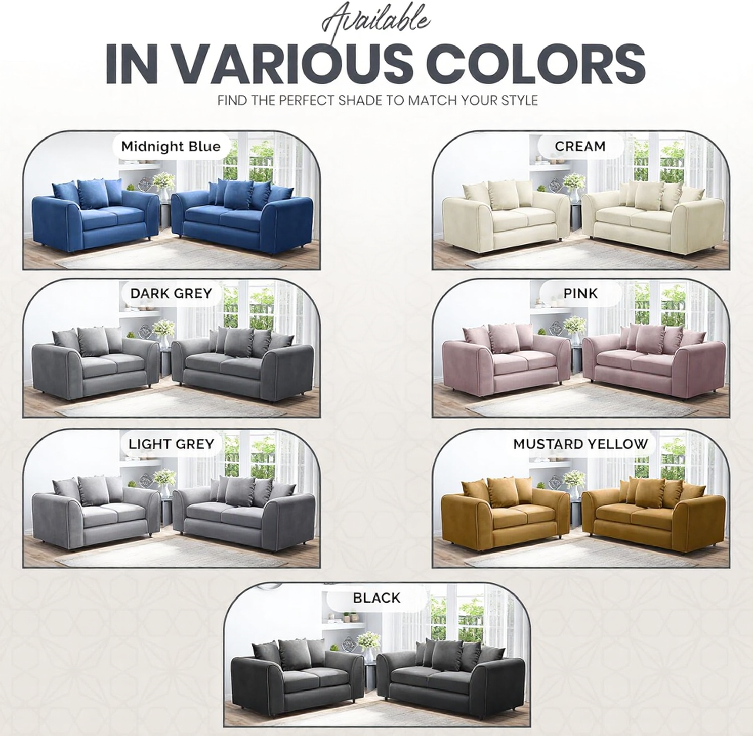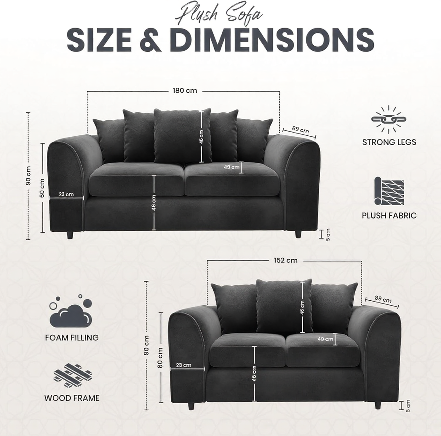 DELANO Plush Velvet 3 and 2 Seater Scatterback Sofa Set - Dark Grey