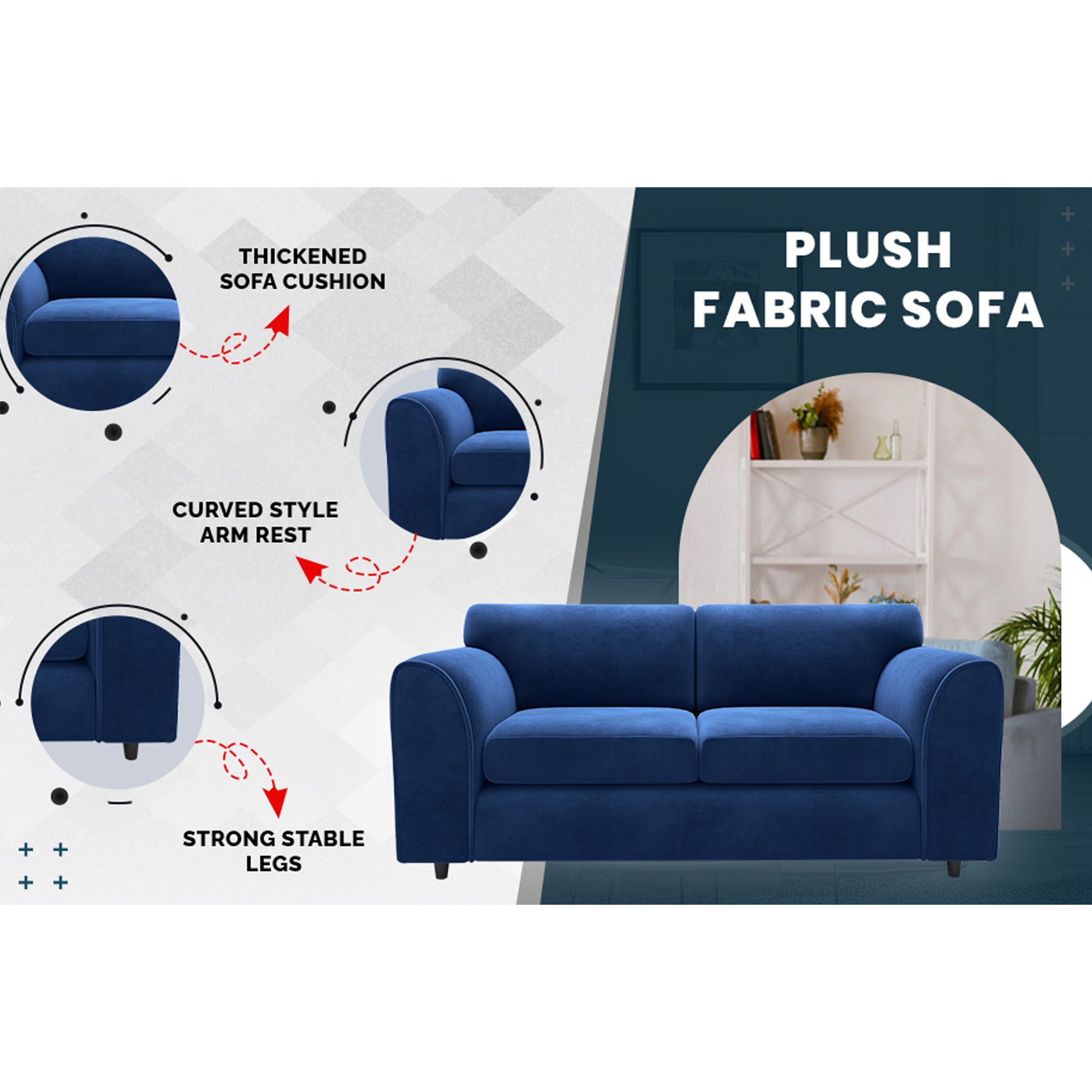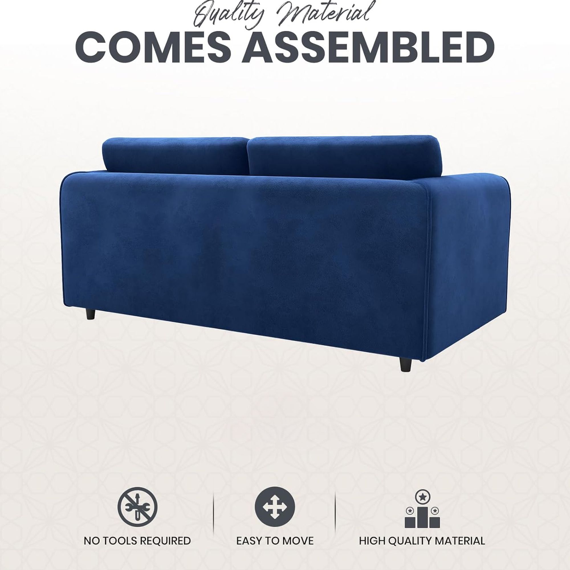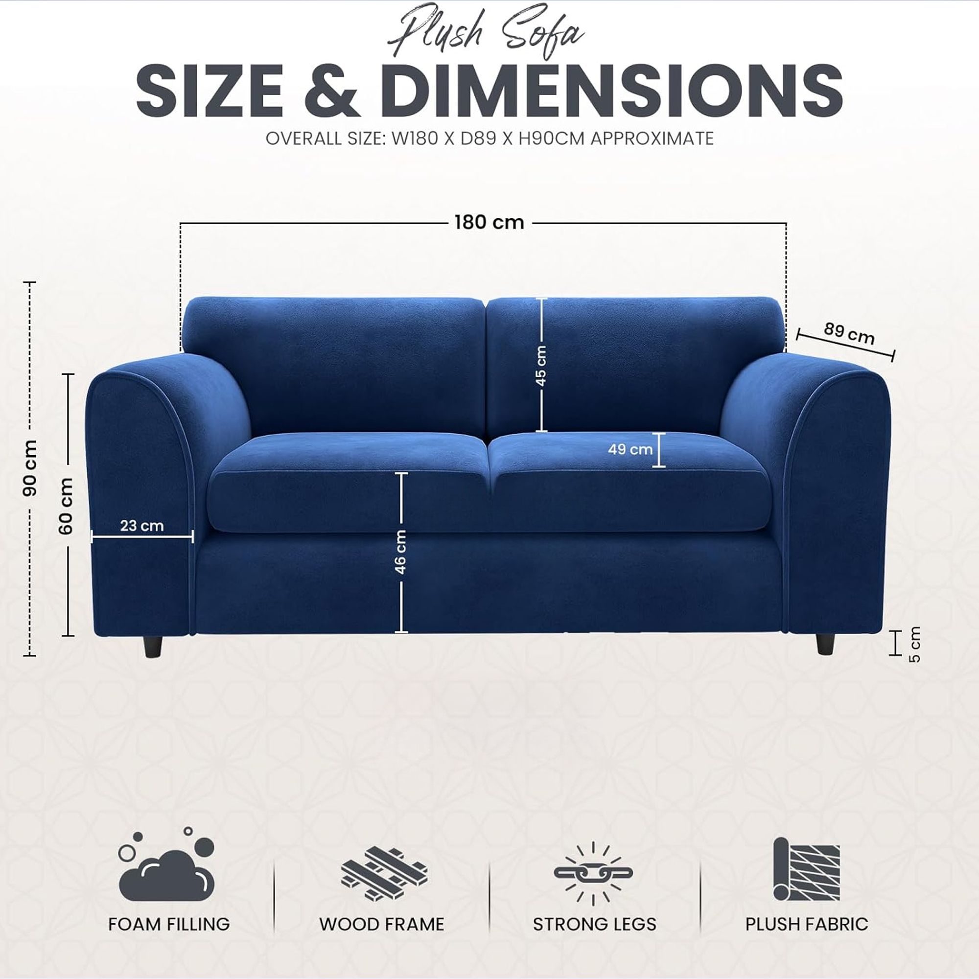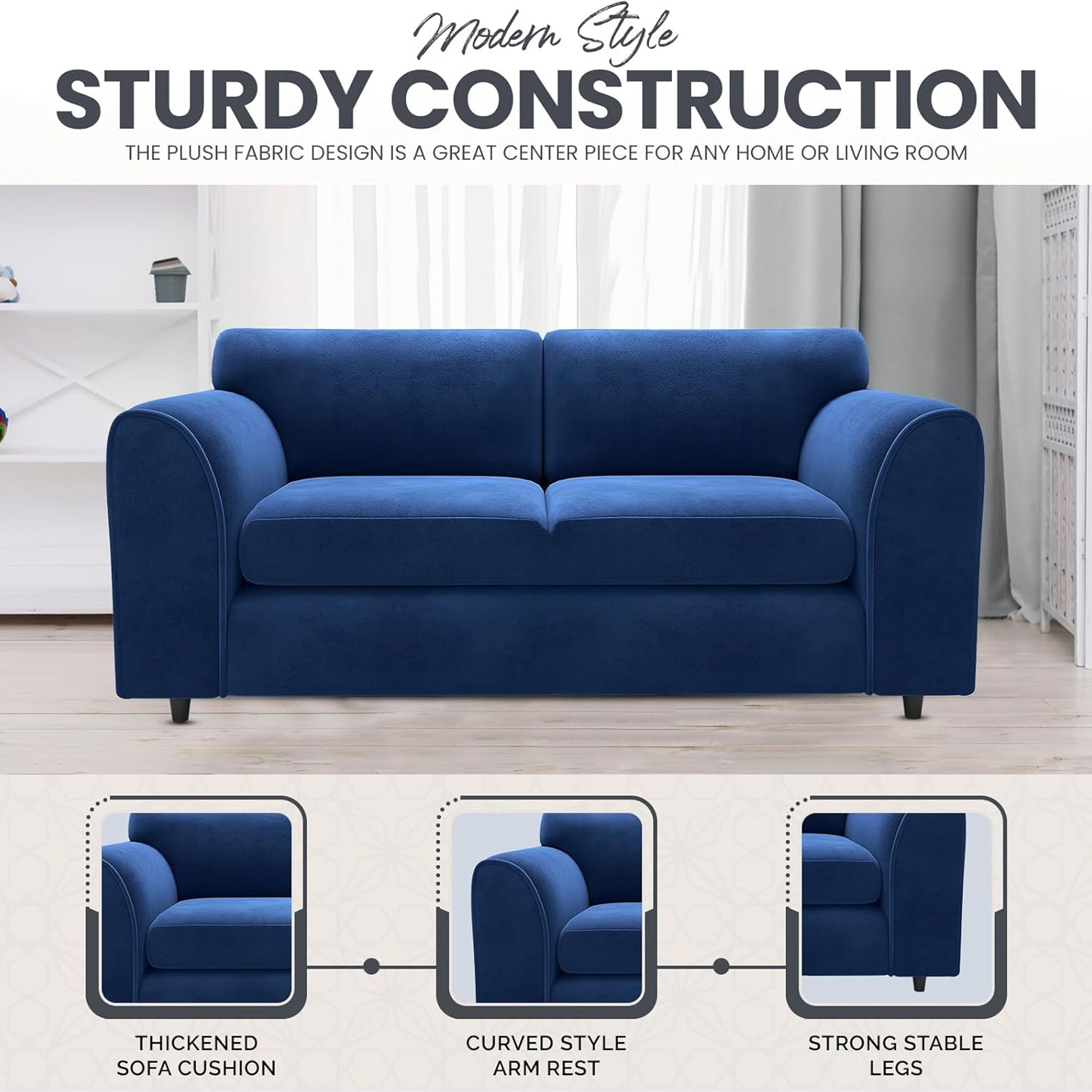 DELANO Plush Velvet 3 Seater Fullback Sofa - Midnight Blue