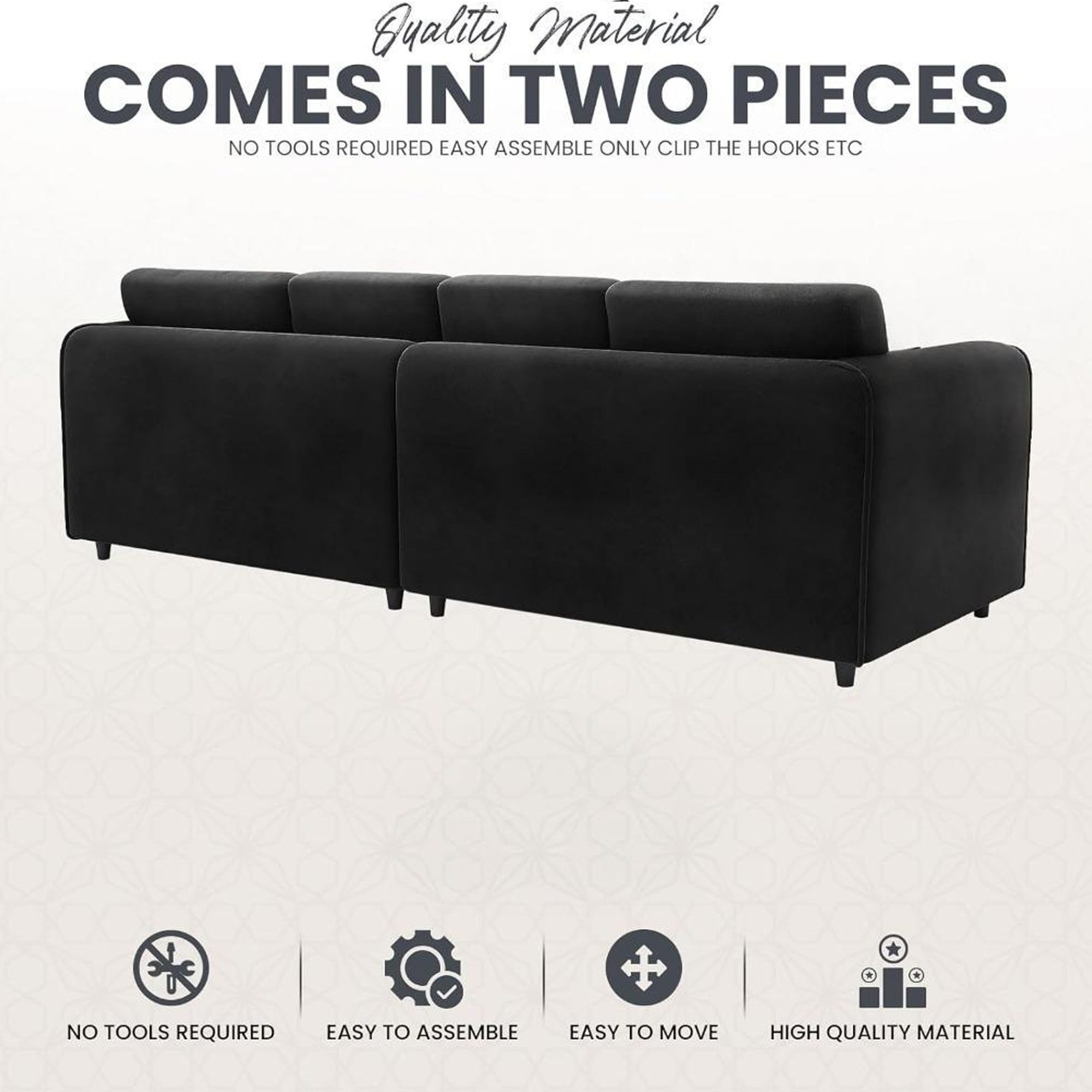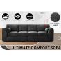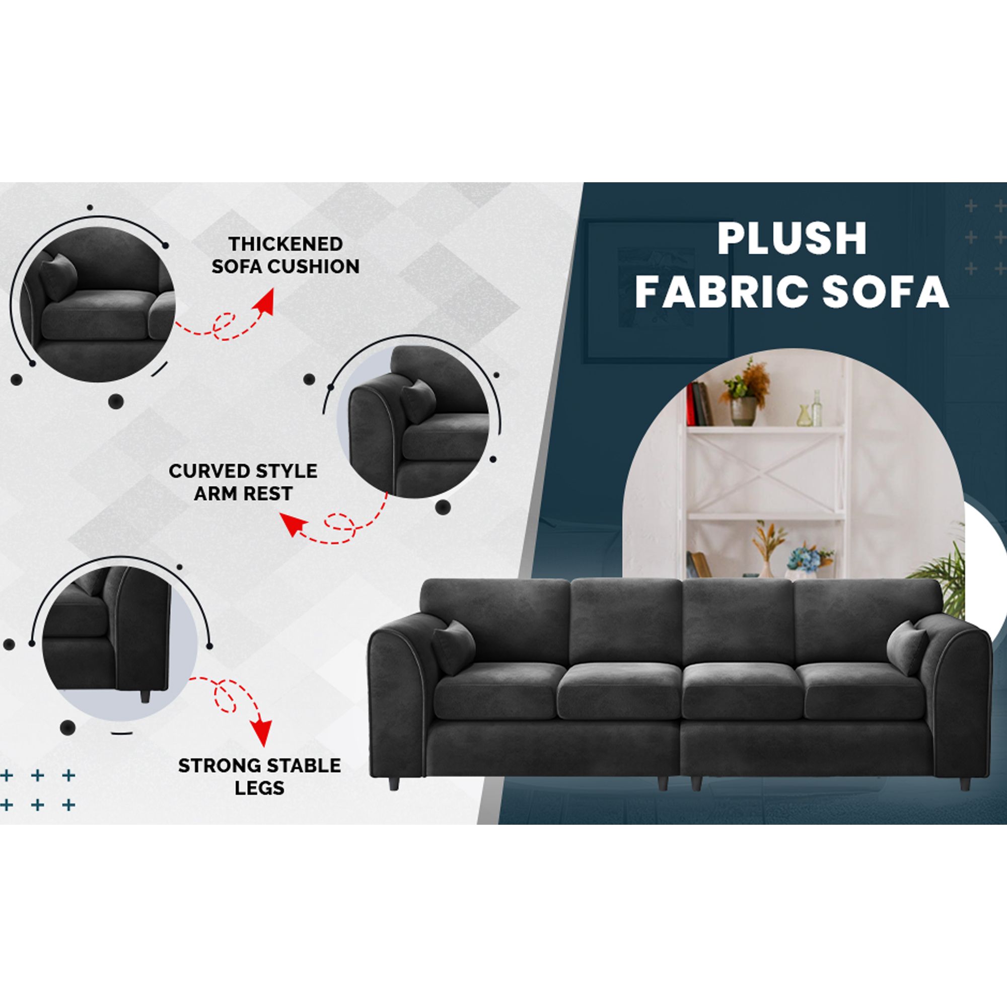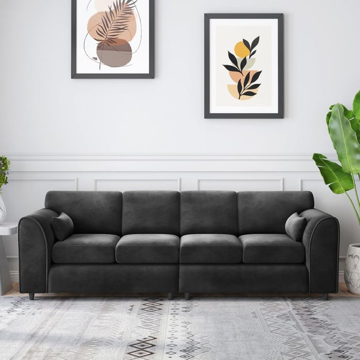 The full back cushions and gently angled arms offer cozy support, perfect for relaxing or entertaining guests. Spacious yet elegant, this sofa accommodates family and friends without compromising on style. Finished in timeless black, the Calviro 4 Seater Sofa adds sophistication and contemporary charm to any room, making it a standout centerpiece for your home interiors.