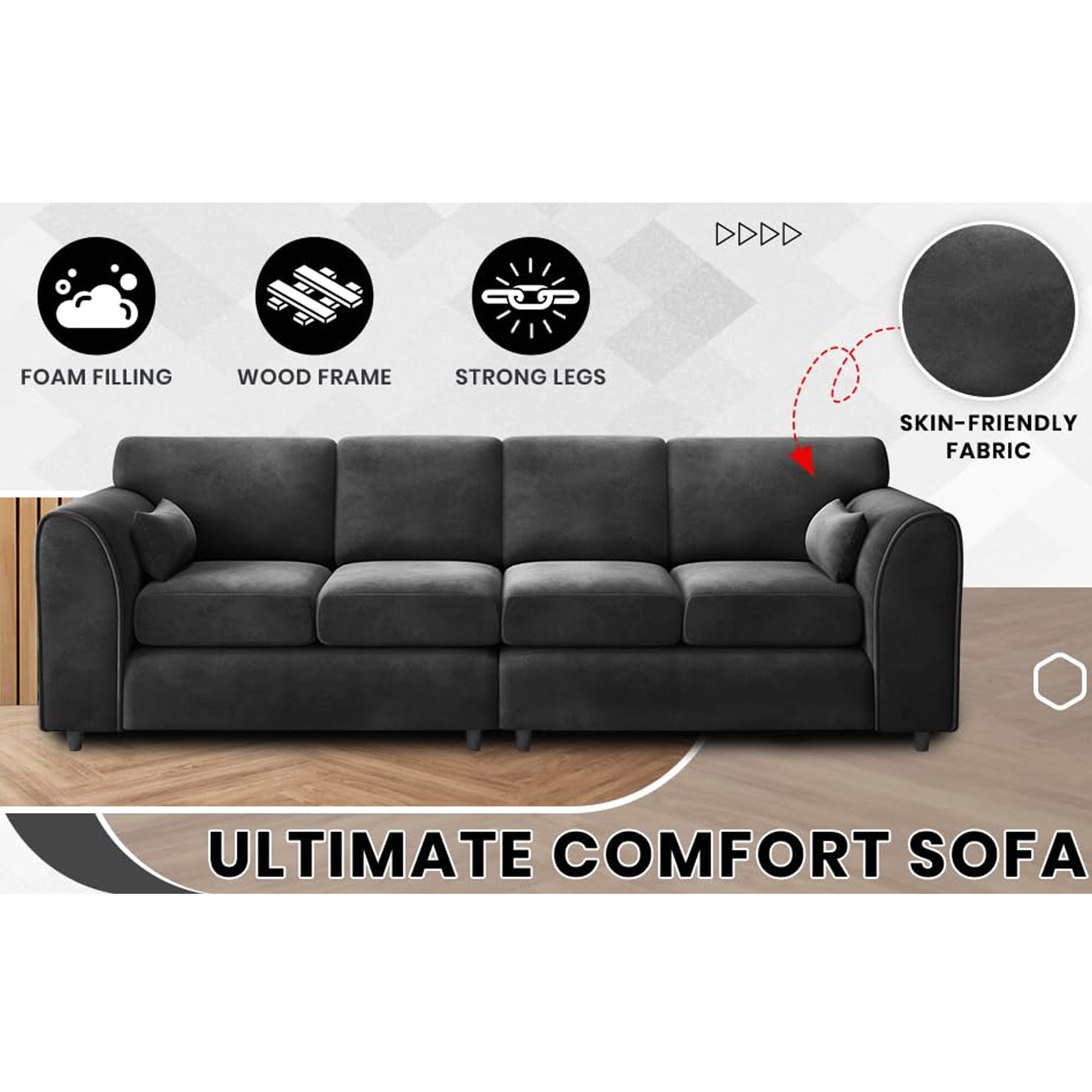 Enhance your living space with the Calviro 4 Seater Sofa, where modern style meets ultimate comfort. Upholstered in plush velvet, it provides a soft, luxurious feel, while its sturdy wooden frame ensures lasting durability.