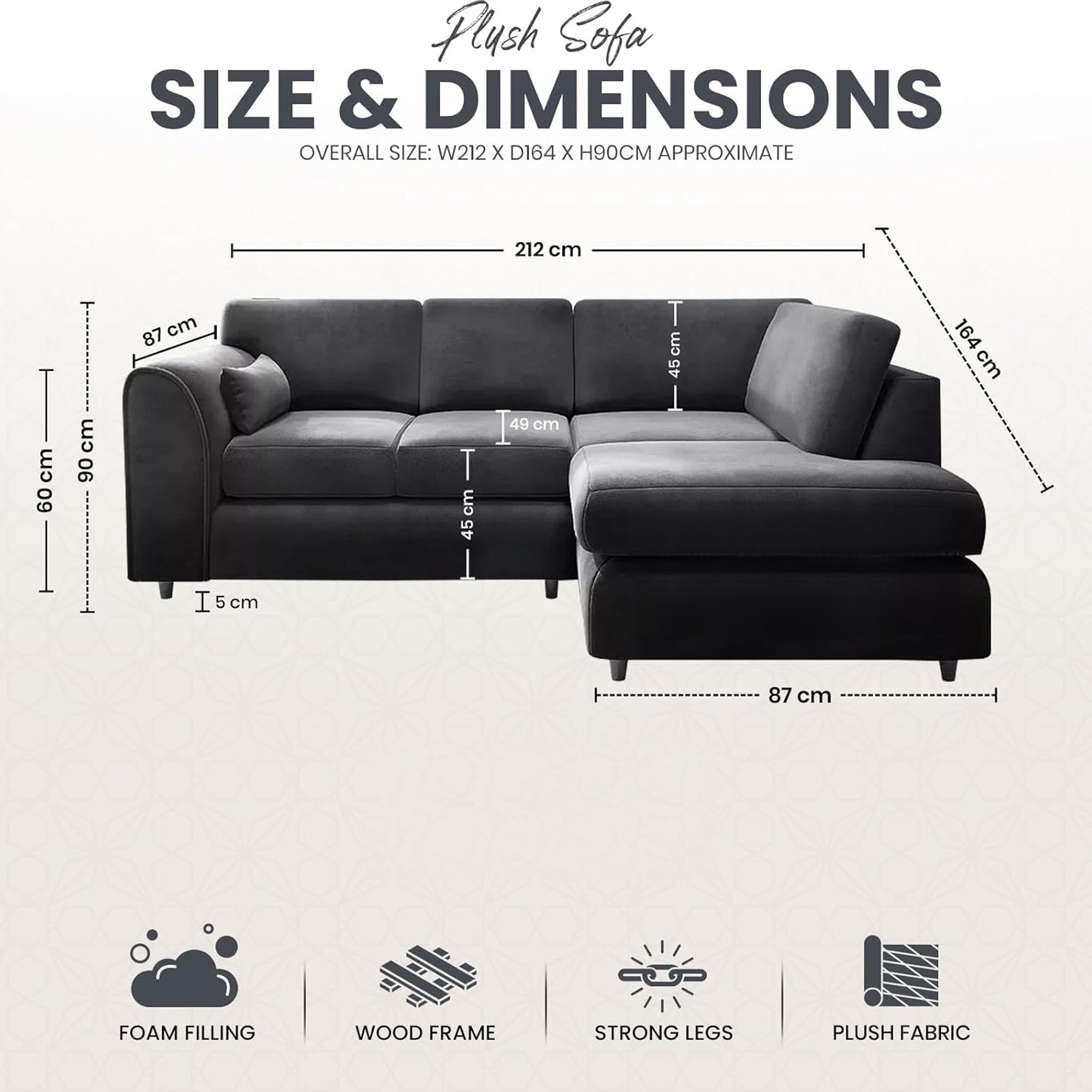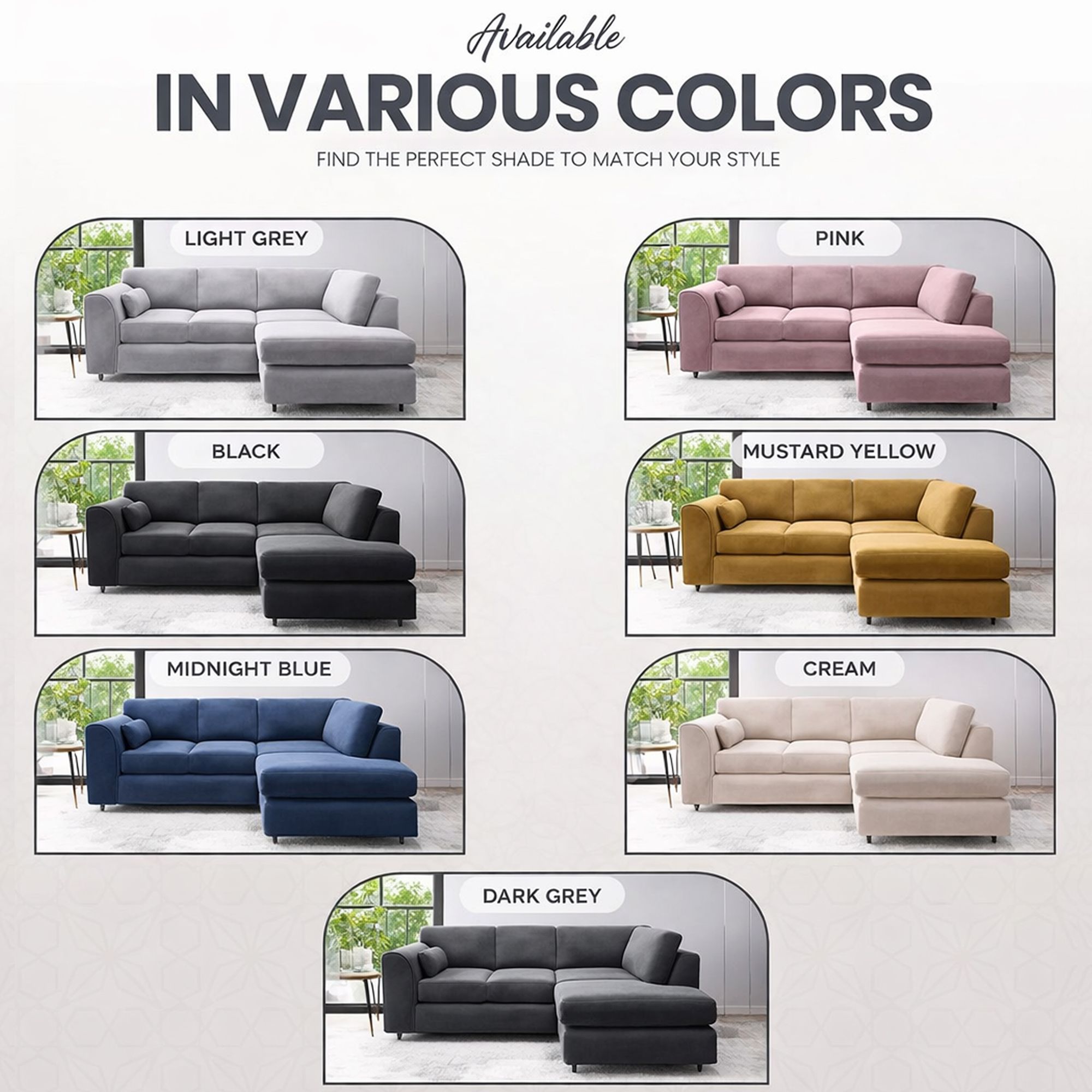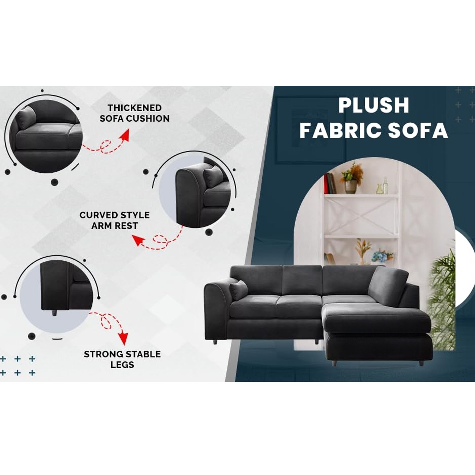 Upholstered in plush velvet, this L-shaped sofa is designed with gracefully angled arms, offering a sleek, modern look. Built on a sturdy wooden frame, it ensures lasting durability while providing ample, cozy seating for family and guests. Its elegant black finish adds a contemporary, timeless touch, making it the ideal centerpiece for any room. Experience ultimate comfort and refined design with the Calviro 4 Seater sofa.