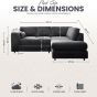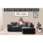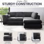 DELANO Plush Velvet 4 Seater L Shaped Fullback Corner Sofa - Black, Left Hand Facing