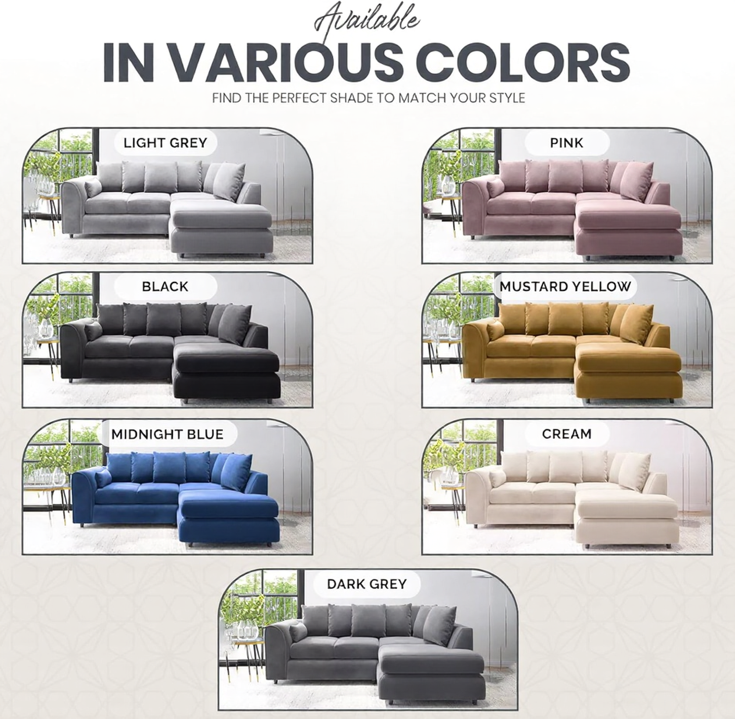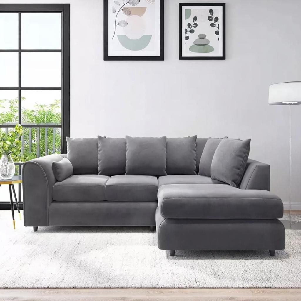 DELANO Plush Velvet 4 Seater L Shaped Scatterback Corner Sofa - Dark Grey, Right Hand Facing