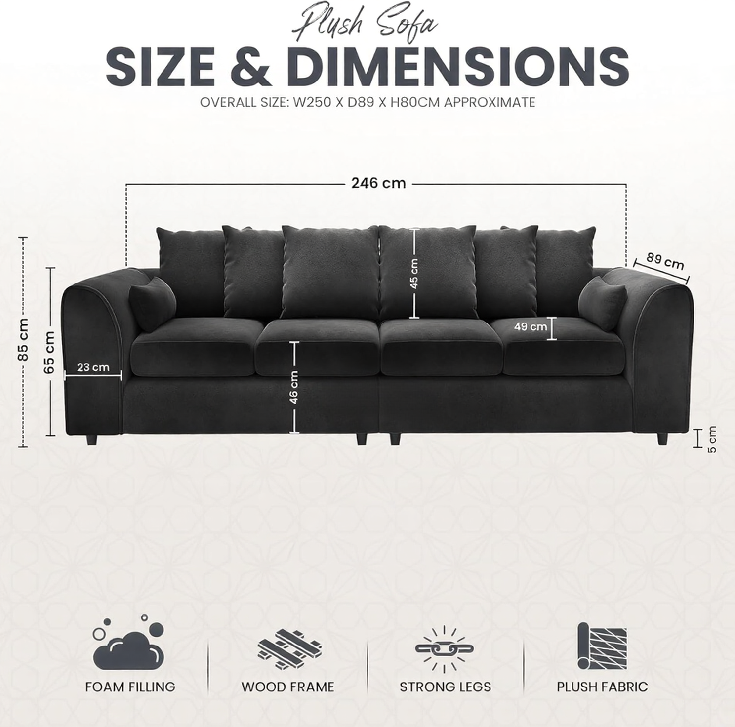 Finished in timeless black, the DELANO 4 Seater Sofa adds sophistication and contemporary charm to any room, making it a standout centerpiece for your home interiors.