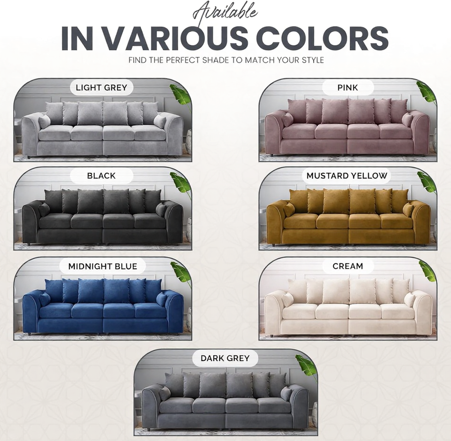 Enhance your living space with the DELANO 4 Seater Sofa, where modern style meets ultimate comfort. Upholstered in plush velvet, it provides a soft, luxurious feel, while its sturdy wooden frame ensures lasting durability.