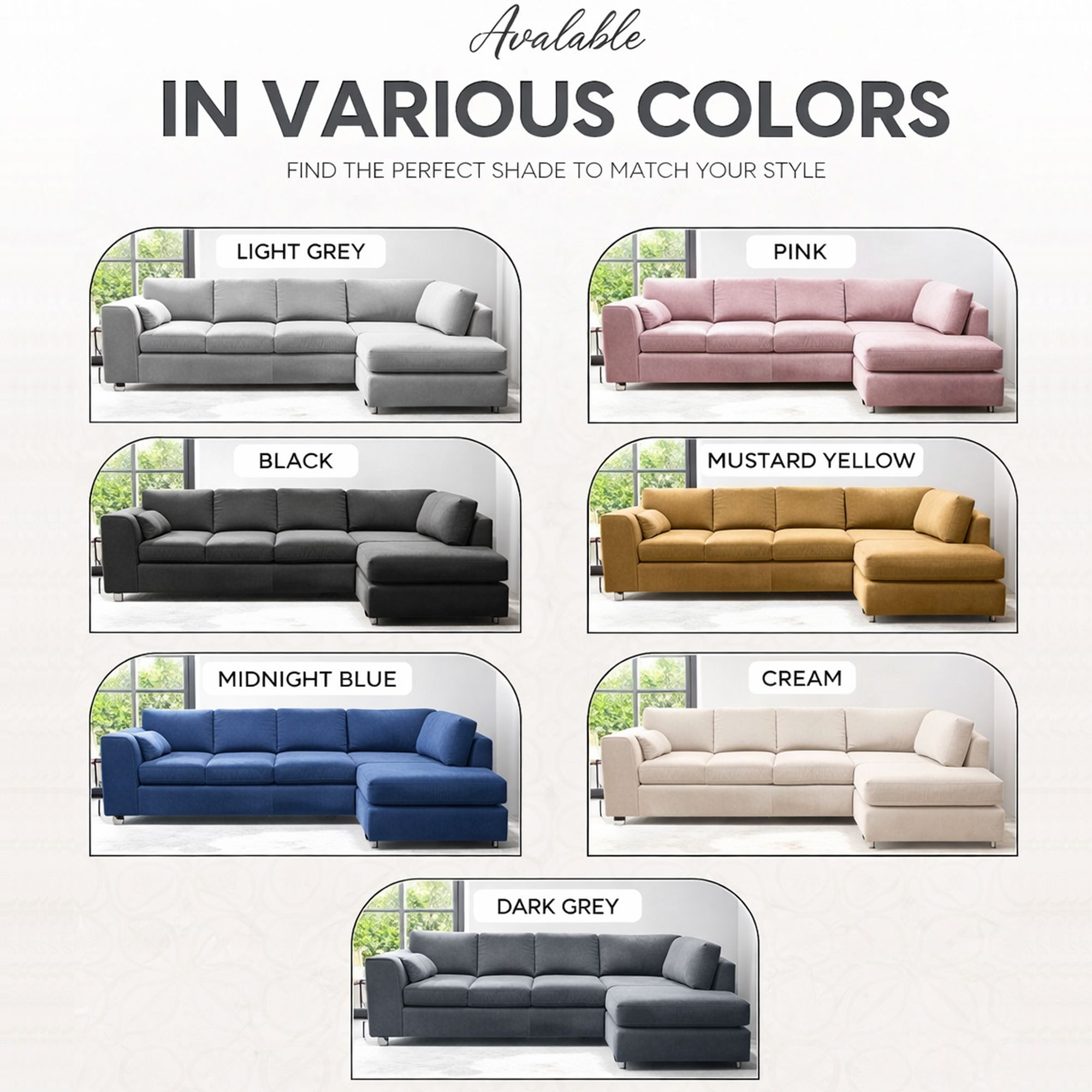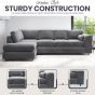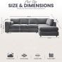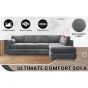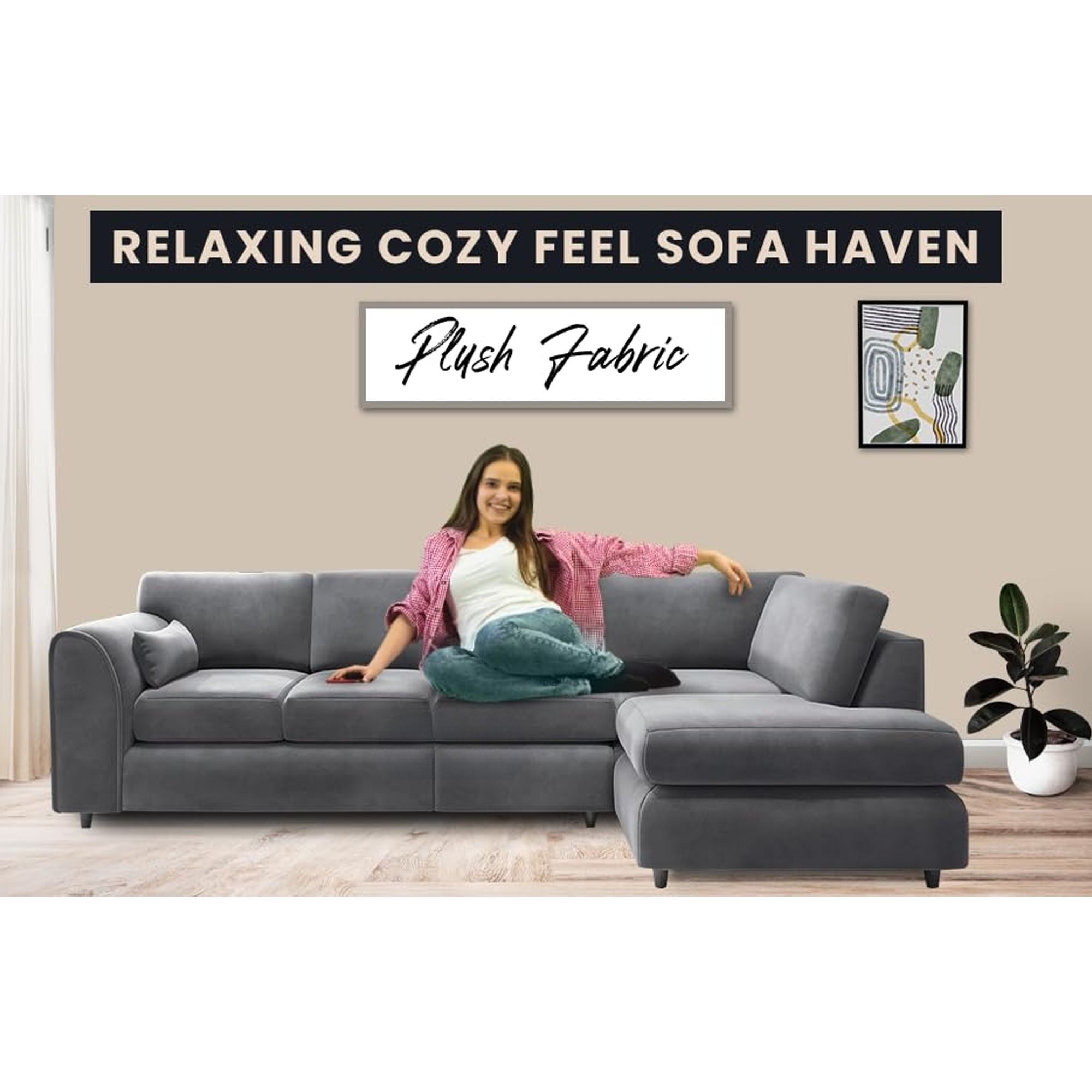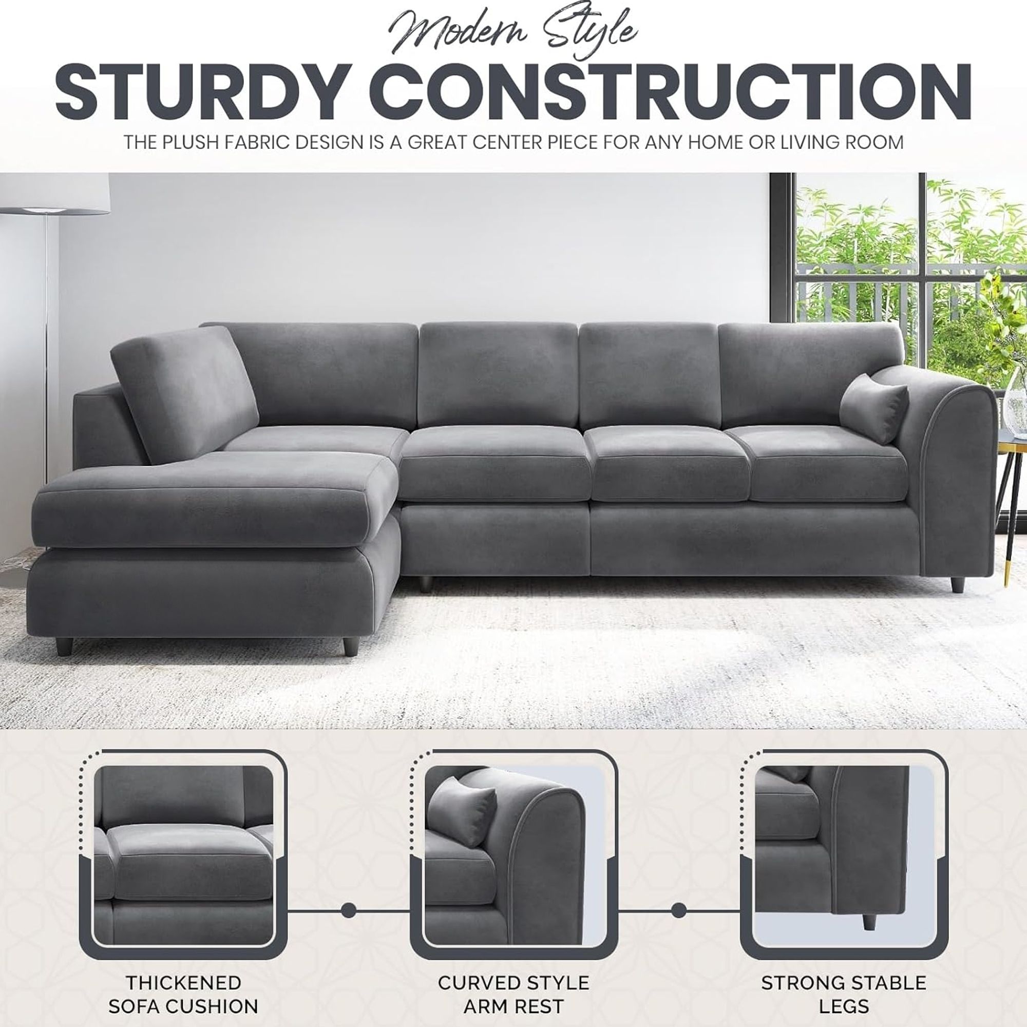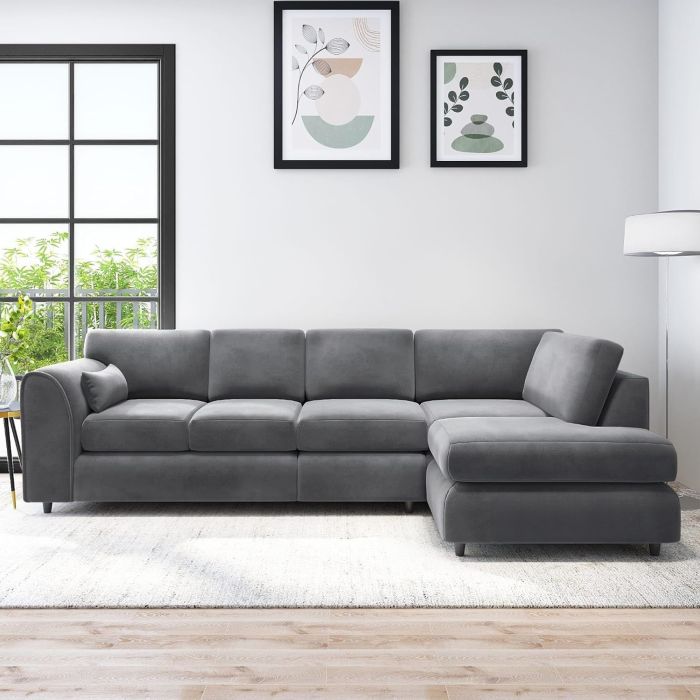 DELANO Plush Velvet Large 5 Seater L Shaped Fullback Corner Sofa - Dark Grey, Right Hand Facing