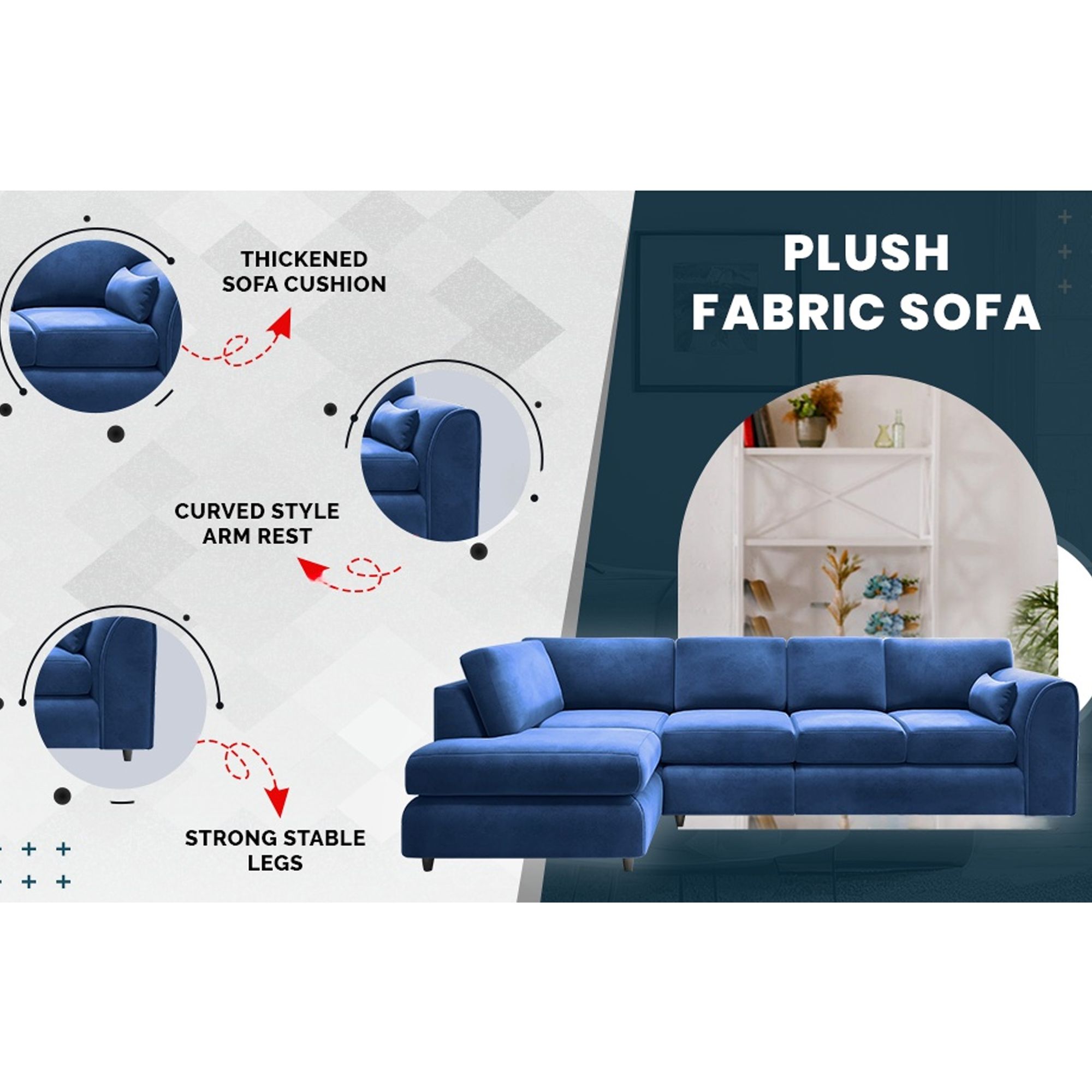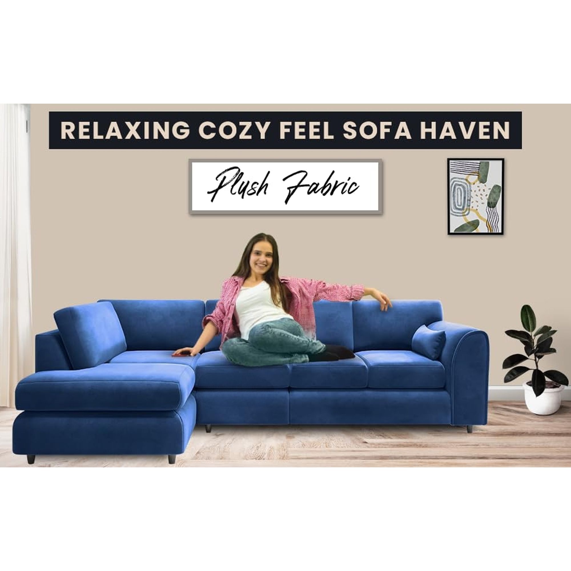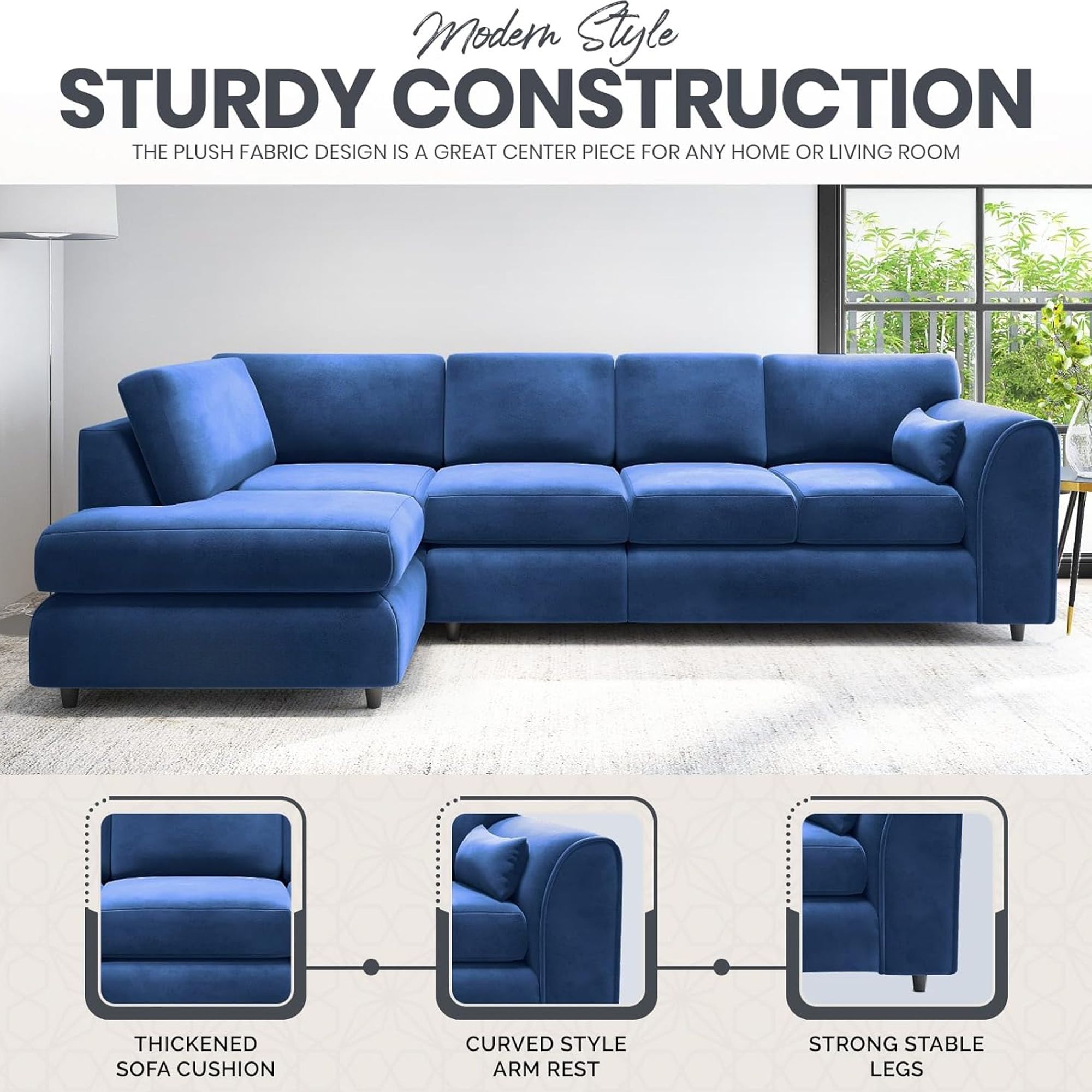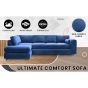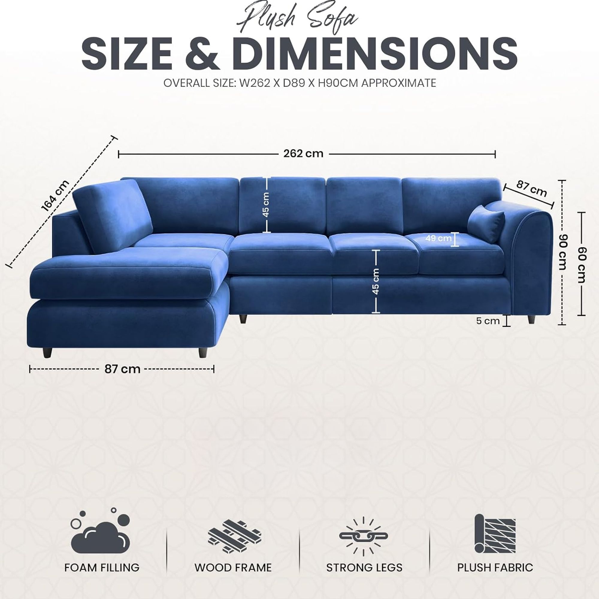 DELANO Plush Velvet Large 5 Seater L Shaped Fullback Corner Sofa - Midnight Blue, Left Hand Facing