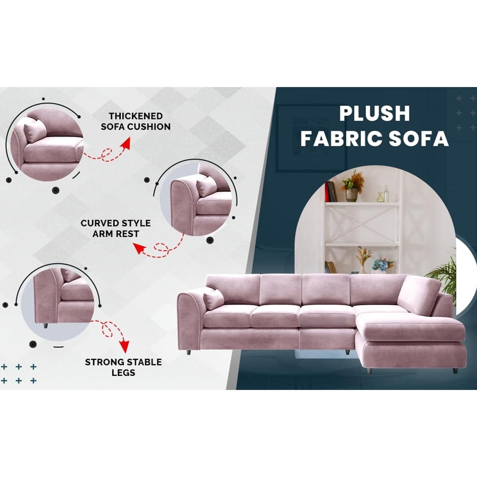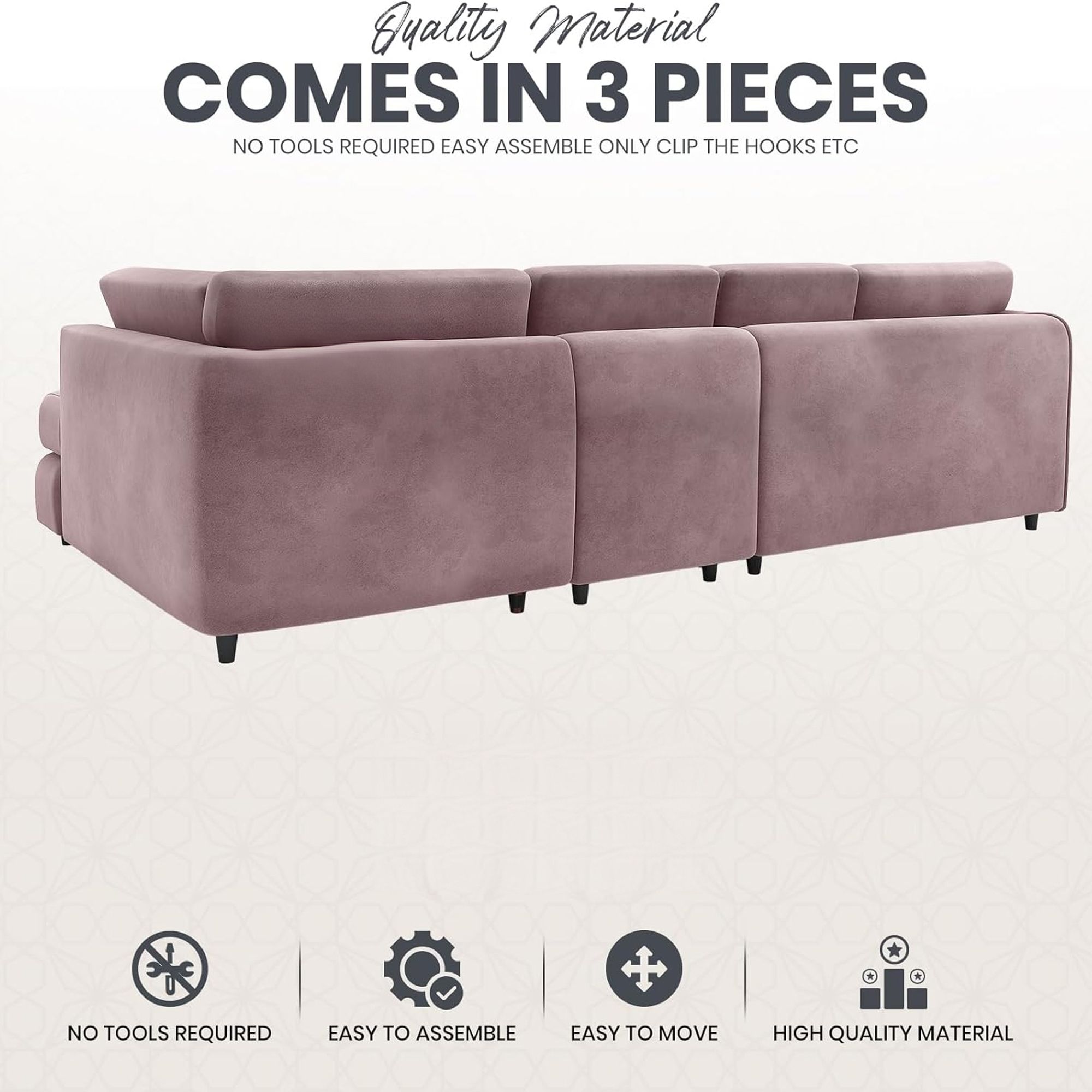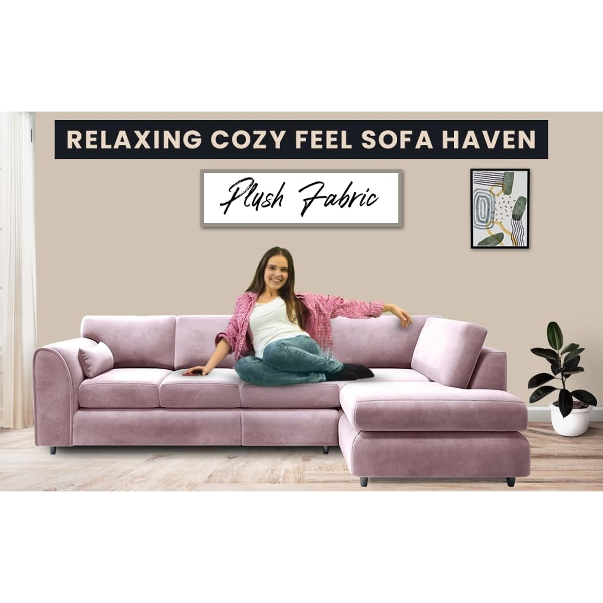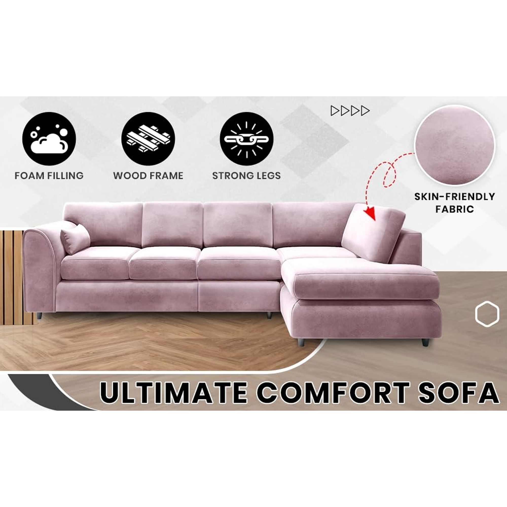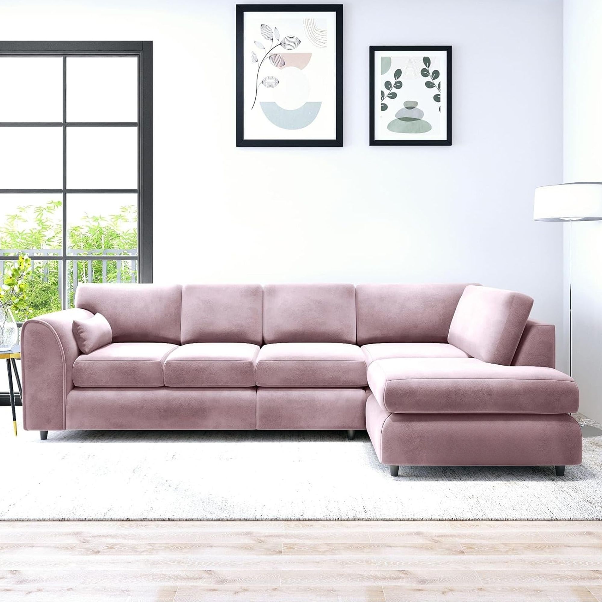 DELANO Plush Velvet Large 5 Seater L Shaped Fullback Corner Sofa - Pink, Right Hand Facing