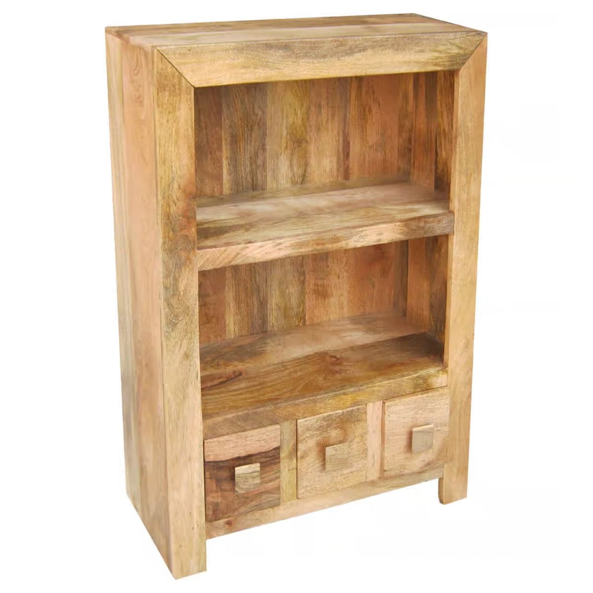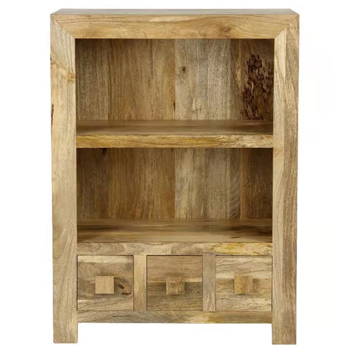 Delta Light Mango Wood Small Bookcase with Drawers and Shelf - Light Wood Tone