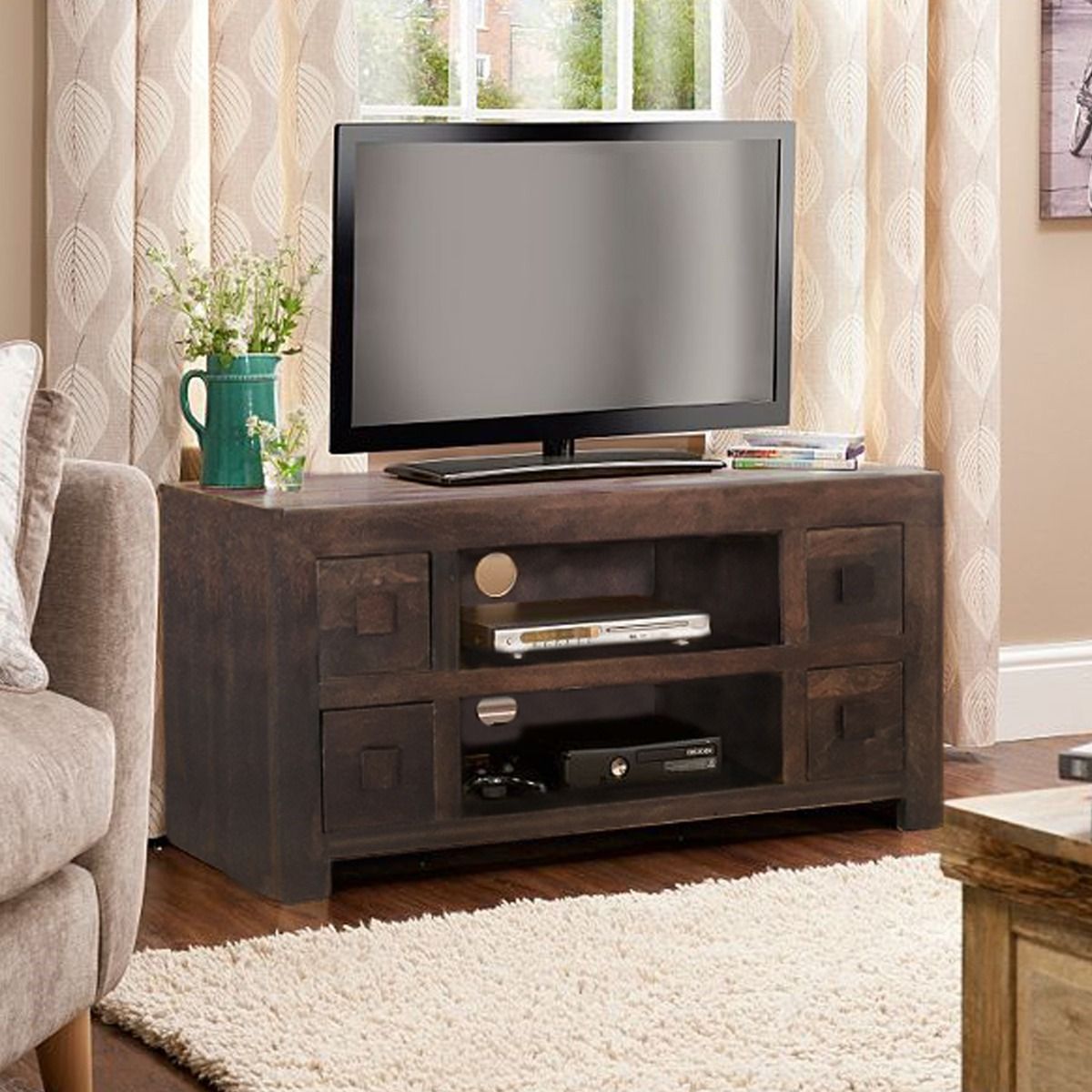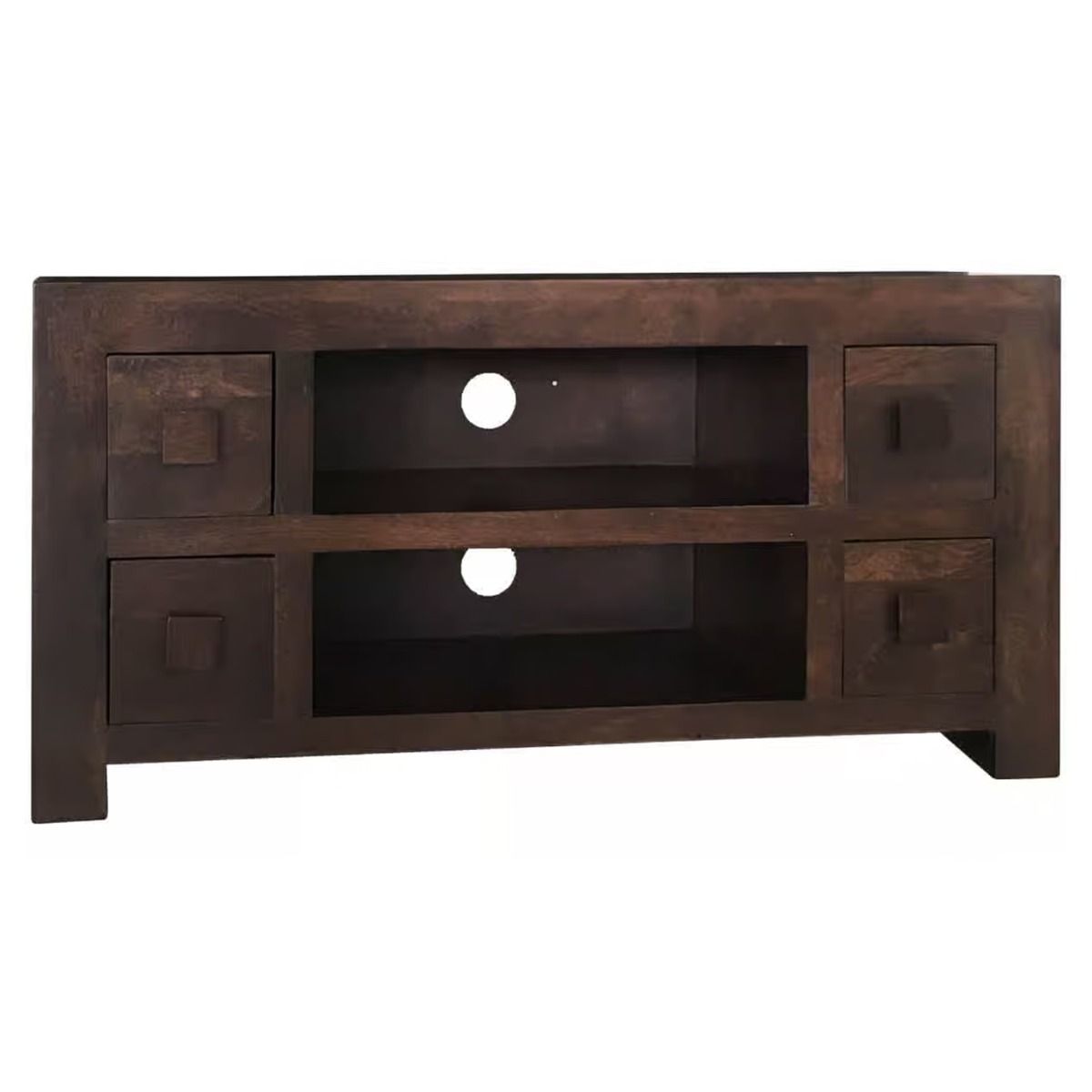 Delta Mango Wood 110cm TV Unit with 4 Drawers and Open Shelf - Walnut