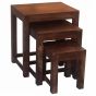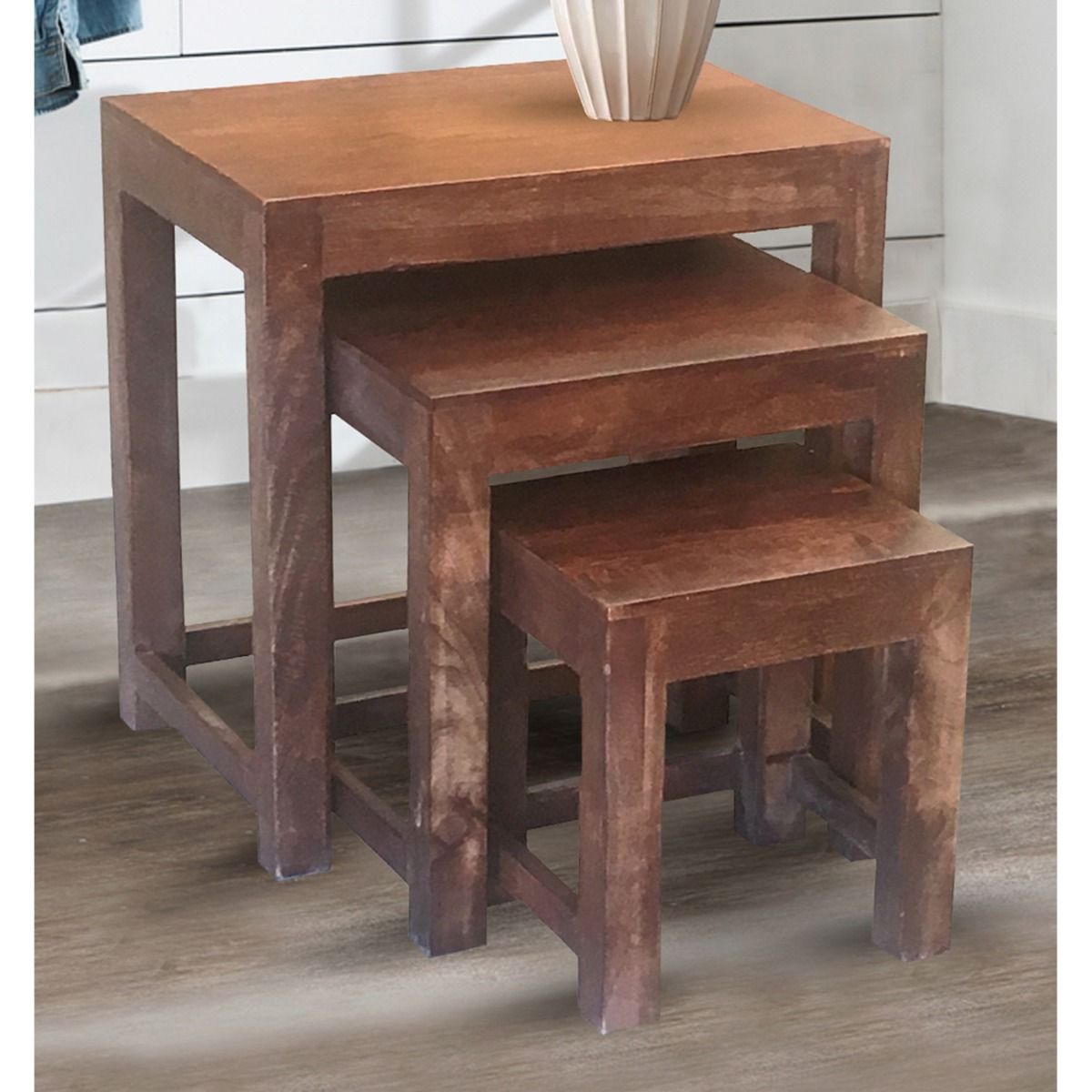 This Delta Mango Wood Nest Of 3 Tables is a beautiful addition to any room. The walnut brown finish is elegant and the straight lines are modern. These tables are handmade and of the highest quality. They are perfect for small spaces because they can be nested together.