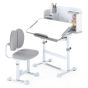 DENCREST Kid's Study Desk and Chair Set with Tilt Desktop and Footrest Bar-Grey