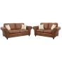 Dennis Faux Leather Button Detailing 3 Seater with 2 Seater Sofa - Brown