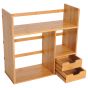 Desk Organiser Compartments Desktop Bookshelf Stationery Storage Shelf Document File Holder with 2 Drawers 2-way Reversed Use Bamboo