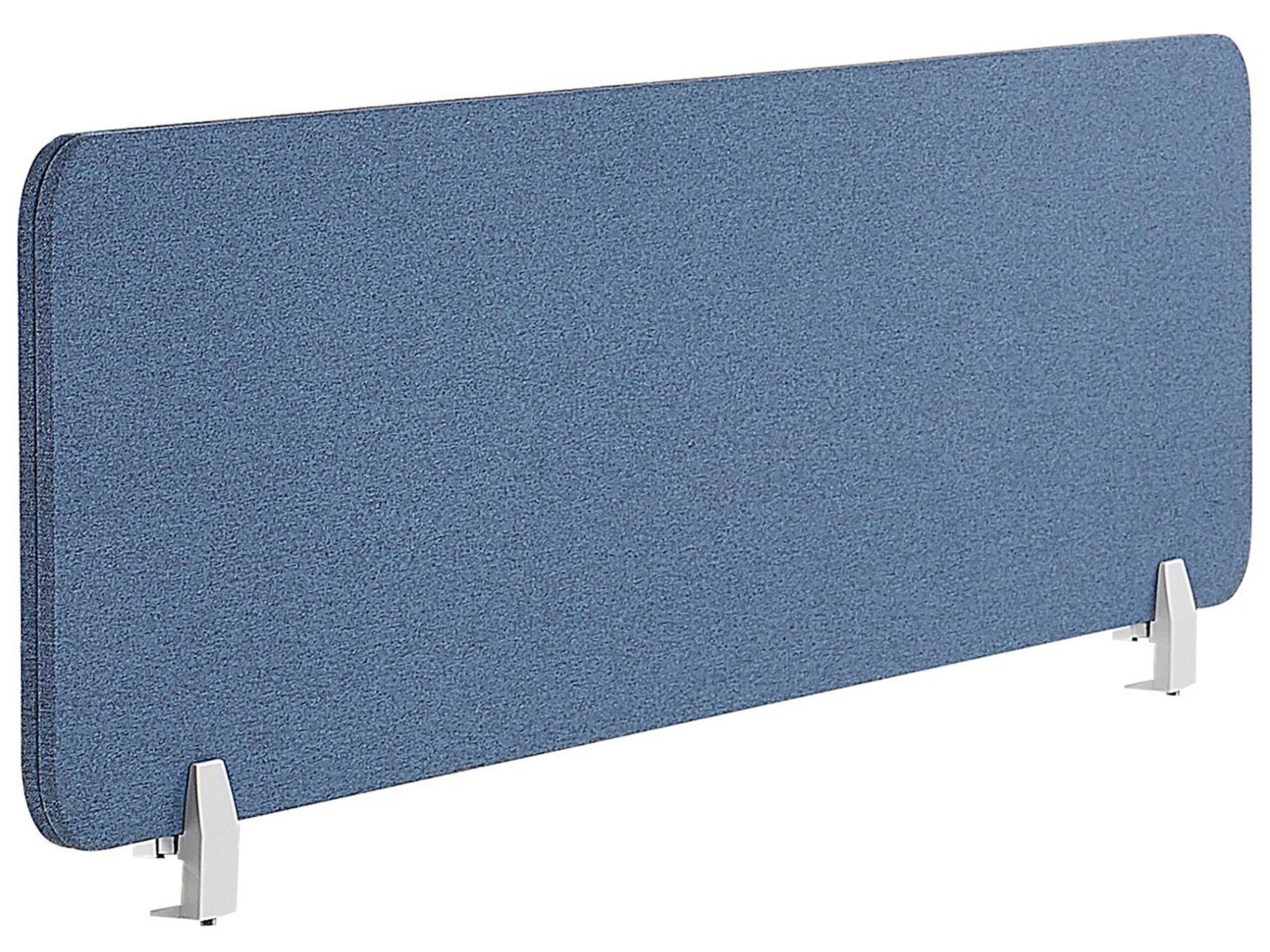 Want to set boundaries for your workspace or improve your privacy? A desk divider is the way to go. Easily mounted with included clamps, it will stop prying eyes from looking at your screen or documents. The durable PET board upholstered in polyester fabric looks stylish, and will filter out background noise to help you focus. Details: Color: Blue. Main material: Polyester. Additional material: Synthetic Material. Material Composition: 100% Polyester Weight: 3 Assembly: Partial Assembly Required