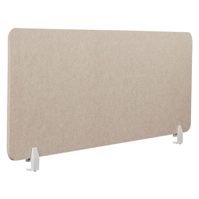 Improve your privacy with this rectangular desk screen. Acoustic and made out of durable PET material, the piece doesn't require daily care. It comes with clamps, that make mounting to a desk very easy and quick, protecting you, and your documents or computer screen from unwanted attention. As it is upholstered with beige polyester fabric, it can be matched with a variety of office decor styles. Details: Color: Beige. Main material: Polyester. Additional material: Synthetic Material. Material Composition: 100% Polyester Weight: 2.5 Assembly: Partial Assembly Required