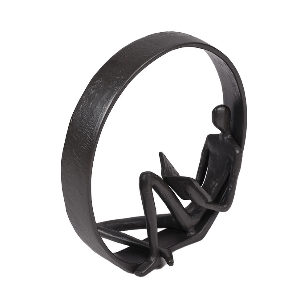 Desktop Metal Statue Reading Men In Circle Ornament Figurines