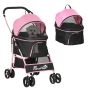 Detachable Pet Stroller, 3-In-1 Dog Cat Travel Carriage, Foldable Carrying Bag with Universal Wheel Brake Canopy Basket Storage Bag, Pink