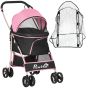 Detachable Pet Stroller with Rain Cover, 3 In 1 Cat Dog Pushchair, Foldable Carrying Bag w/ Universal Wheels, Brake, Canopy, Basket