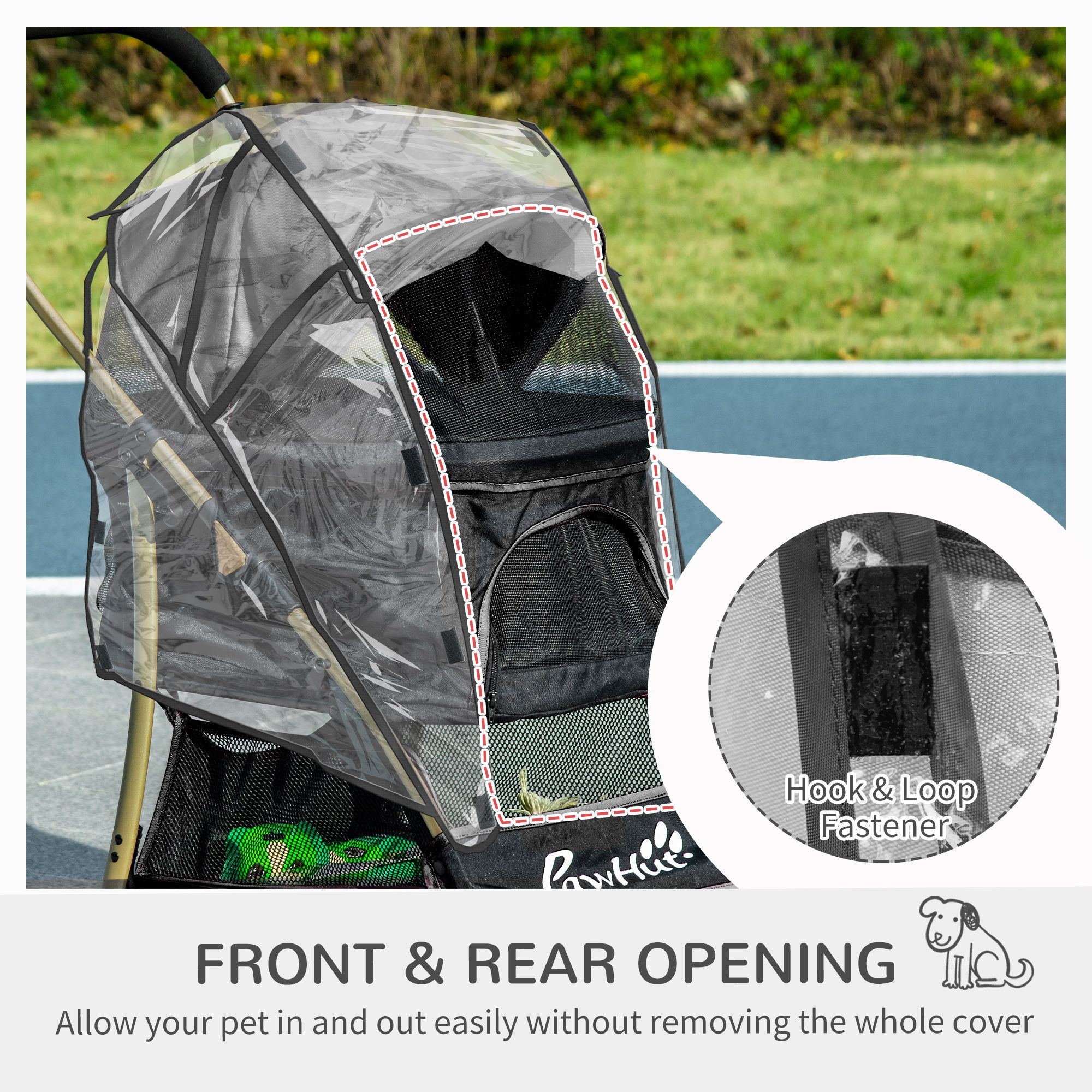 Detachable Pet Stroller with Rain Cover, 3 In 1 Cat Dog Pushchair, Foldable Carrying Bag w/ Universal Wheels, Brake, Canopy, Basket