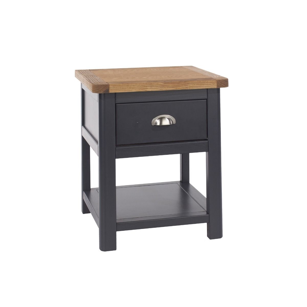 DIEGO 1 Drawer Bedside Table - Midnight Blue with Oak Top