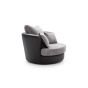 This Dilan swivel chair’s base is made out of solid wood, built for everyday use. Providing the cushioning are deep foam block seats and sumptuously fibre filled back cushions. High-back arm rests circle right back up to the shoulders. Also at your service are two toss pillows, included with the Dilan swivel chair. Upholstery is a combination cord chenille and faux leather fabric. Pick up the Dilan in a black/grey scheme or a livelier brown and beige colour pairing.