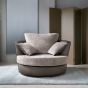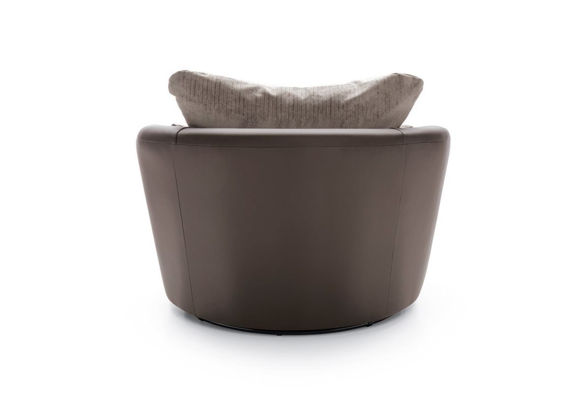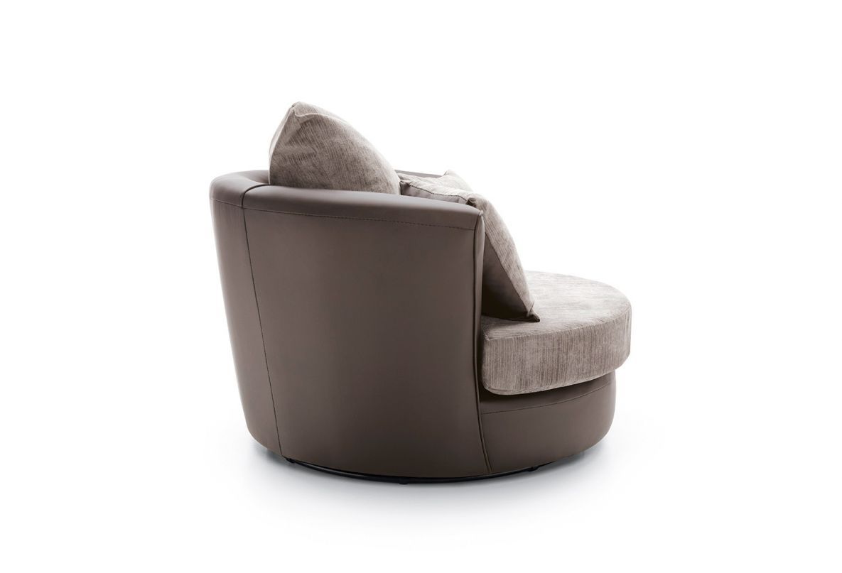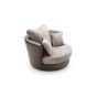 This Dilan swivel chair’s base is made out of solid wood, built for everyday use. Providing the cushioning are deep foam block seats and sumptuously fibre filled back cushions. High-back arm rests circle right back up to the shoulders. Also at your service are two toss pillows, included with the Dilan swivel chair. Upholstery is a combination cord chenille and faux leather fabric. Pick up the Dilan in a black/grey scheme or a livelier brown and beige colour pairing.