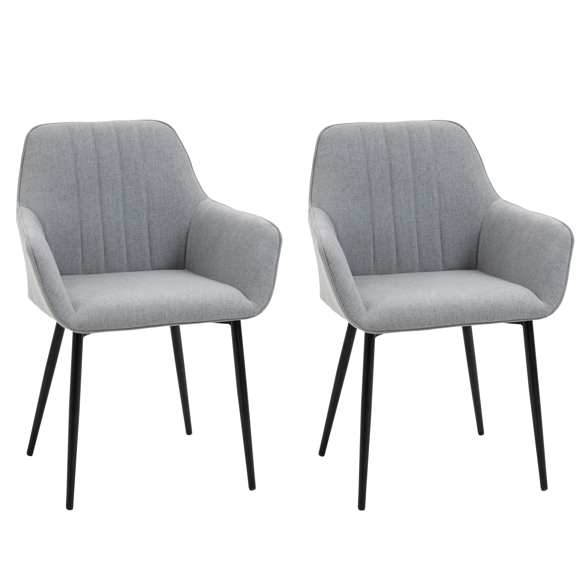 Dining Chairs Upholstered Linen Fabric Accent Chairs with Metal Legs, Set of 2, Light Grey