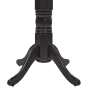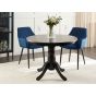 This vintage-inspired dining table is a perfect centrepiece for any dining room or kitchen. The retro-styled pedestal with four solid wood, curved legs creates a chic look, making every interior warm and inviting. The round table top offers seating space for 4 people, while the classy black finish matches any wall colour. Precisely constructed, the table maintains its quality over the years.